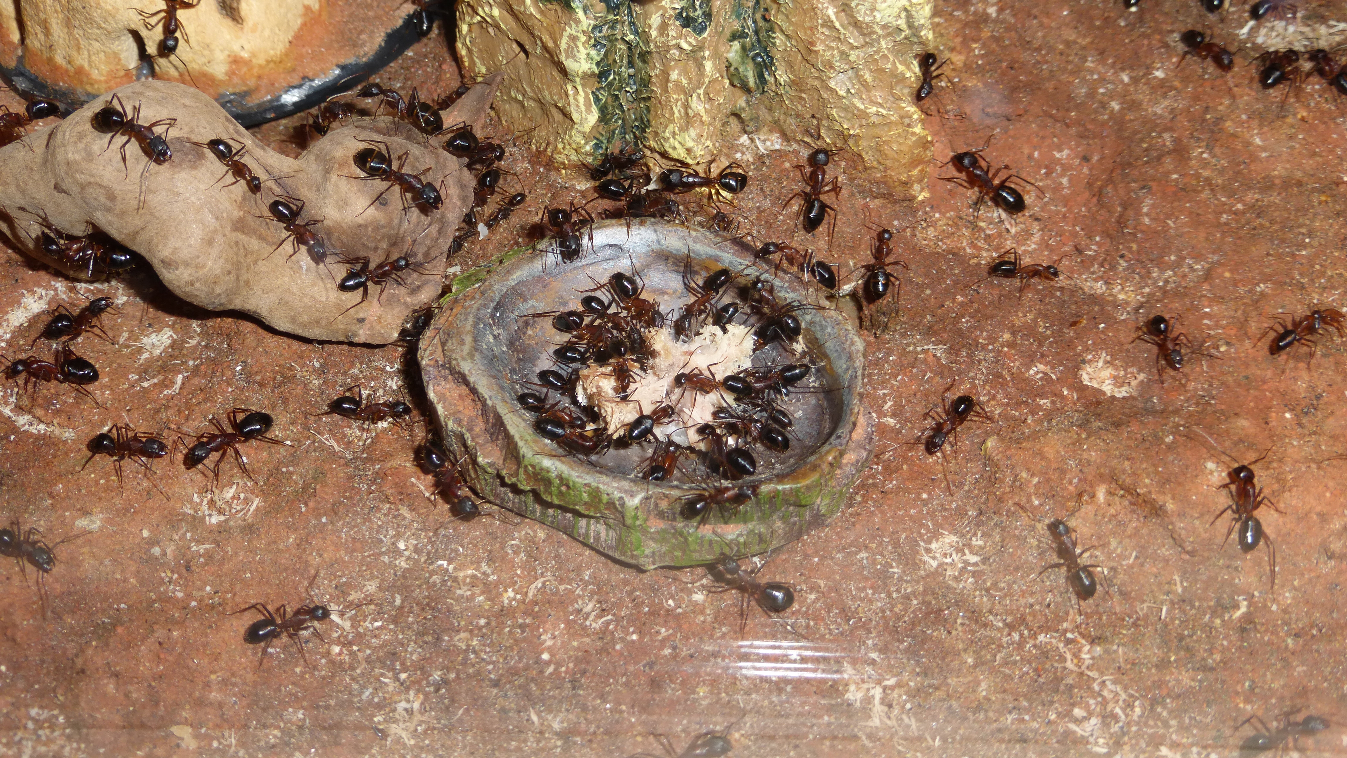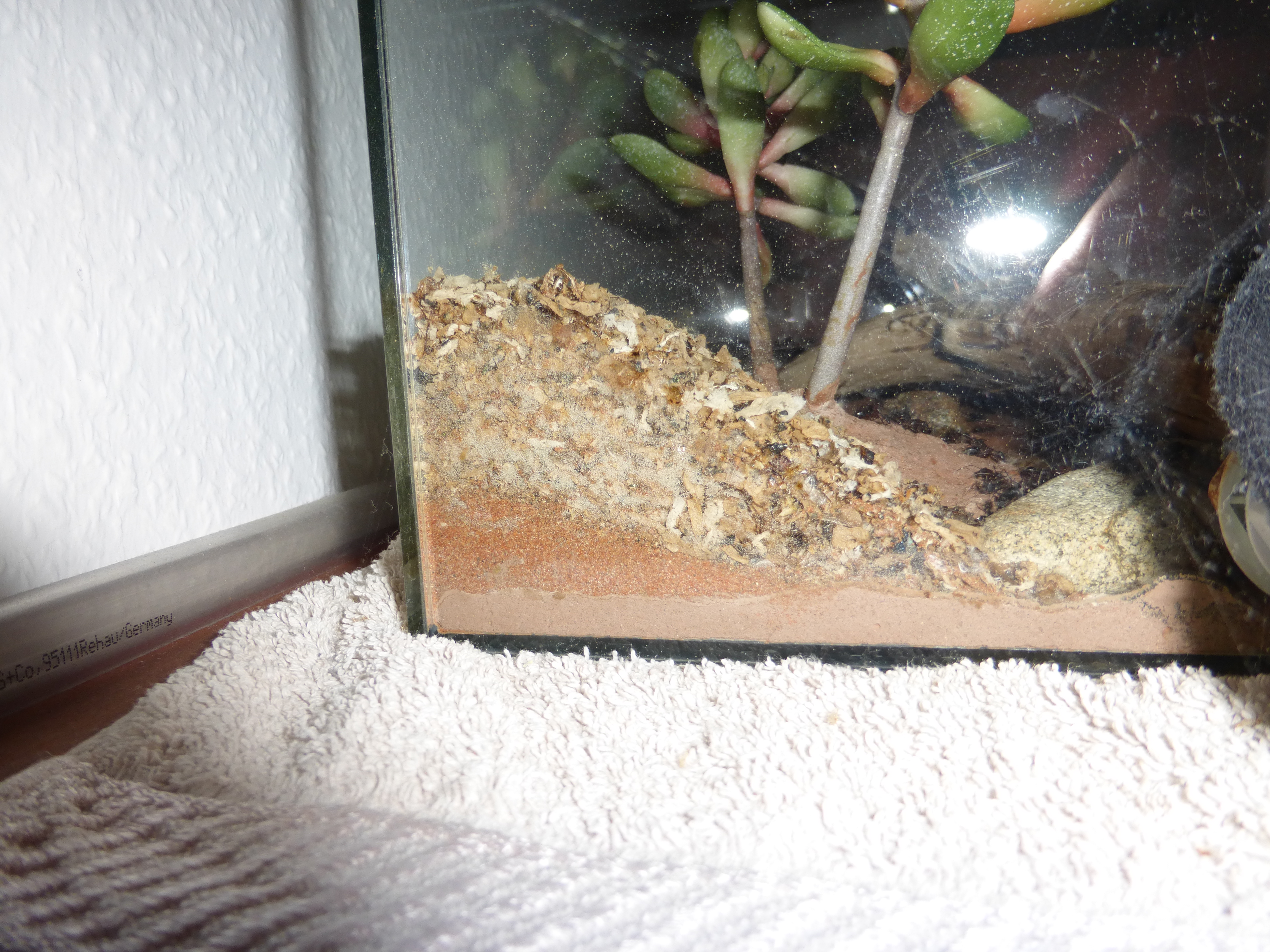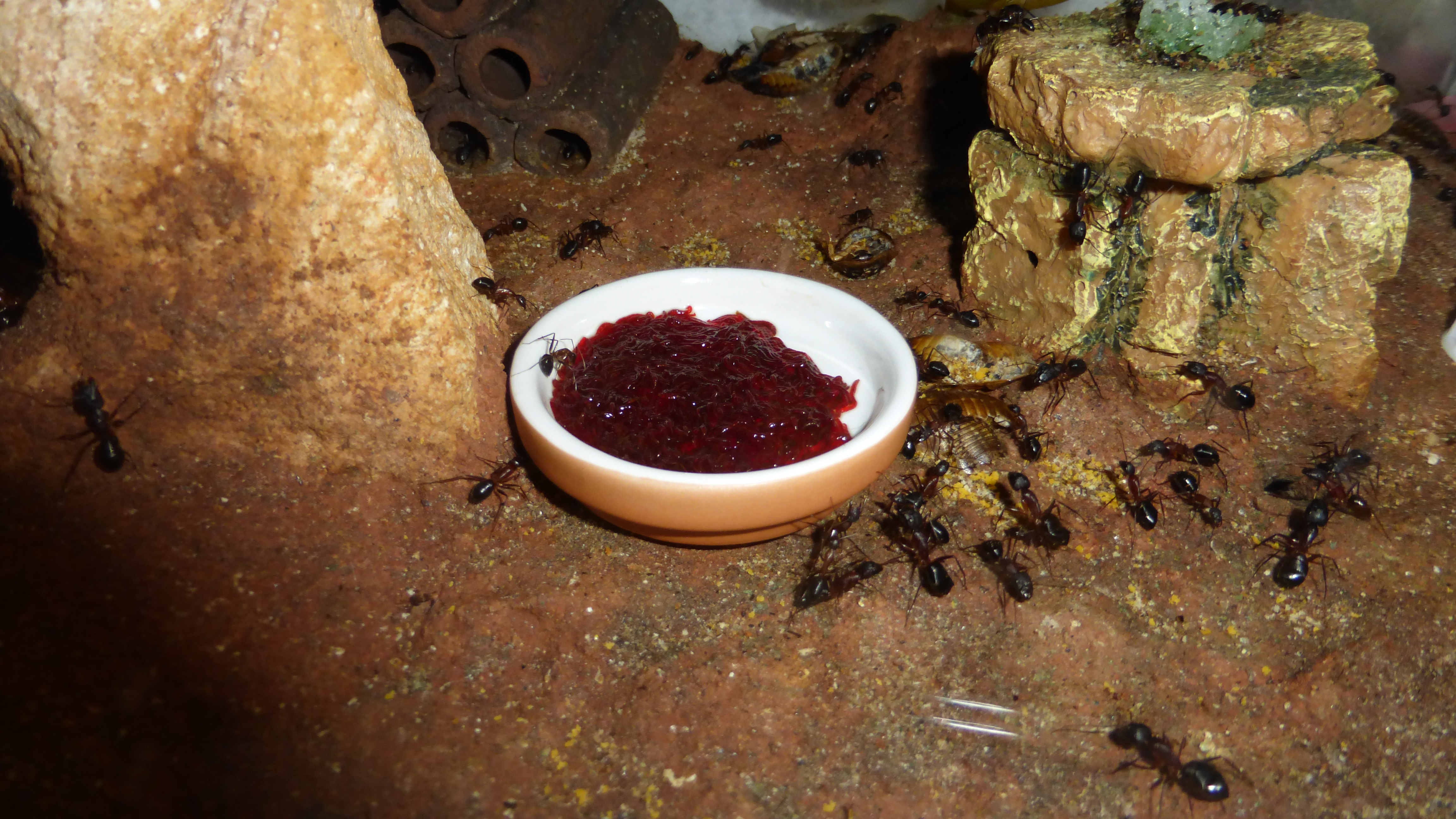 Viel ist nicht los, sie sind recht inaktiv und essen/trinken nicht viel. FĂĽr den kleinen Zuckerspender hier im Becken brauchen sie 3-4 Tage.