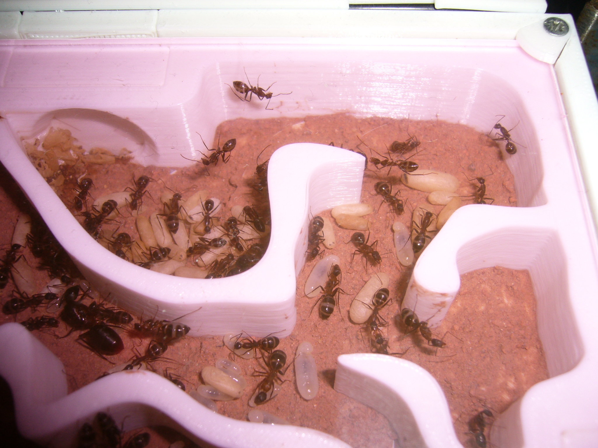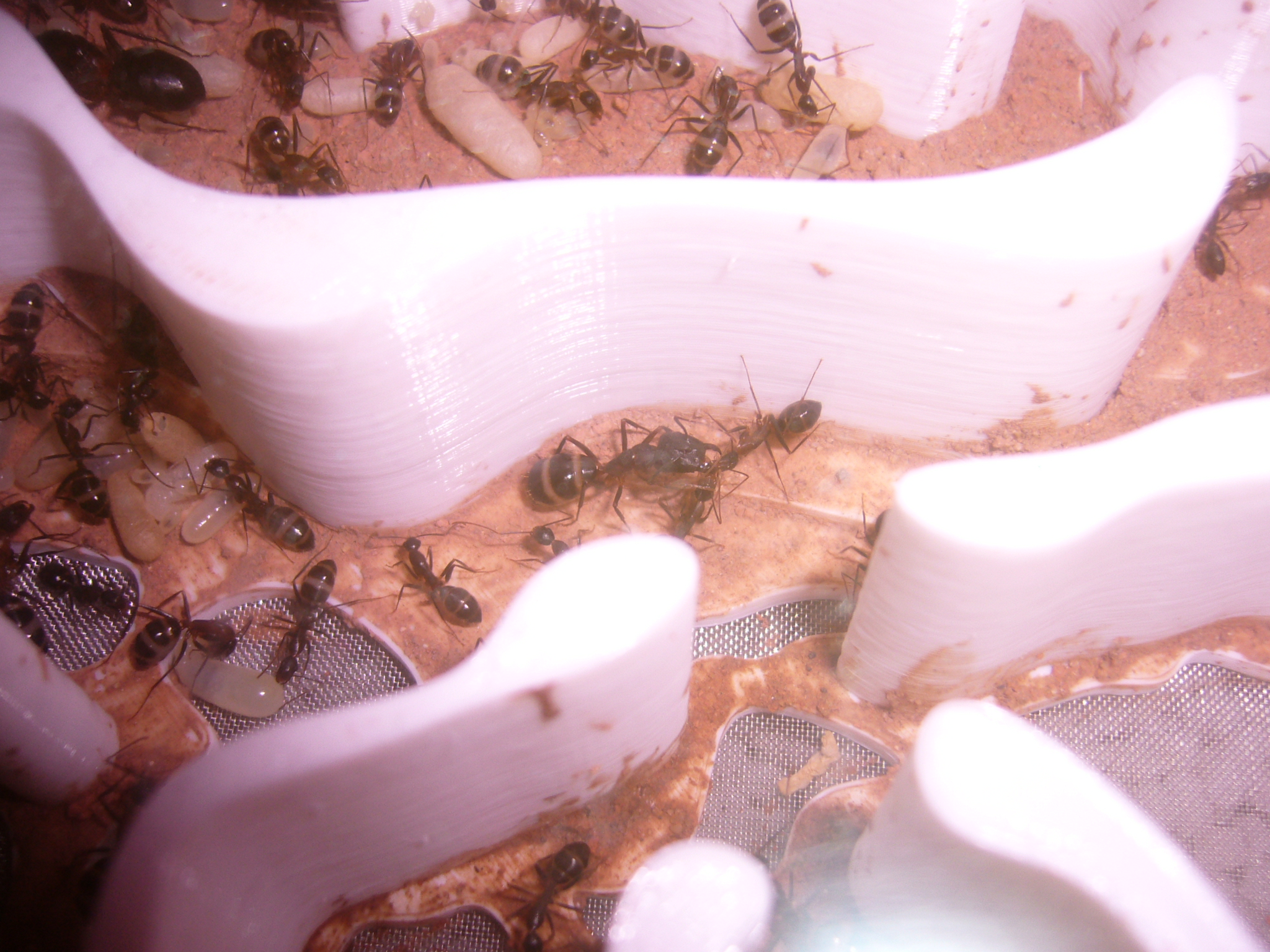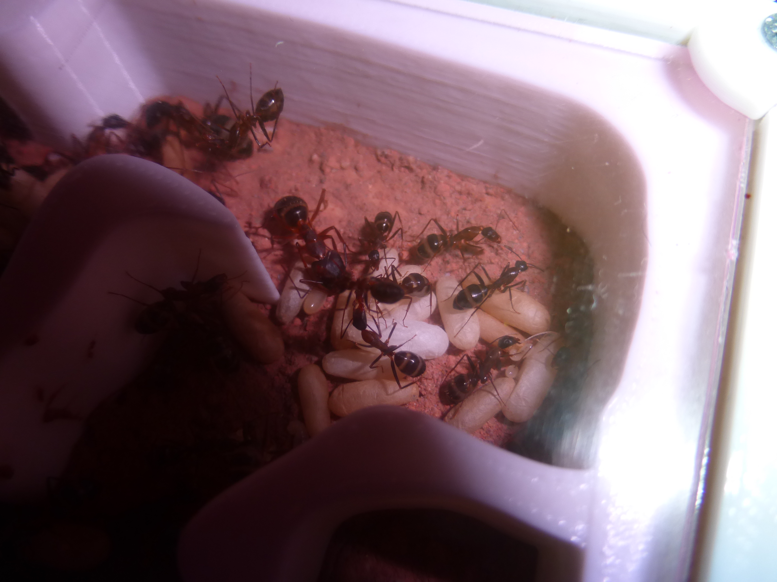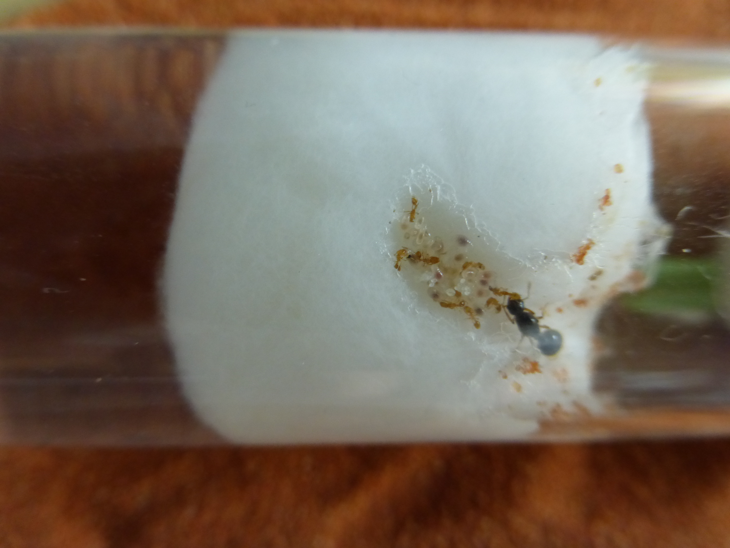 Brut zu versorgen (die neue Kamera ist super für so kleine Ameisen, genug Beleuchtung vorausgesetzt). Frage mich wann die vorhaben in die