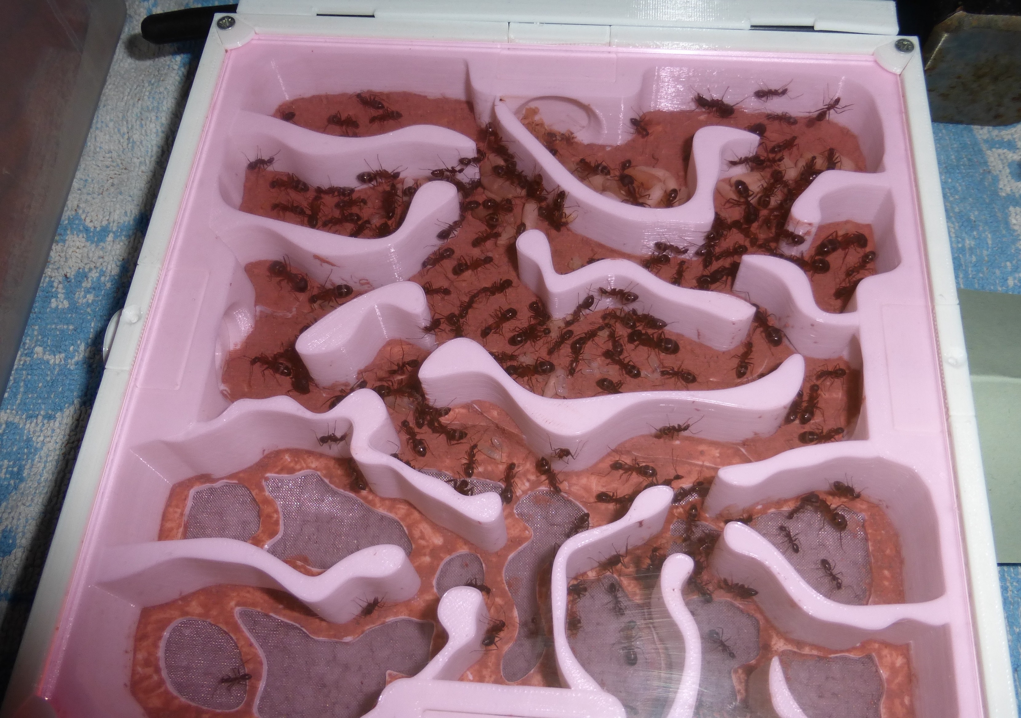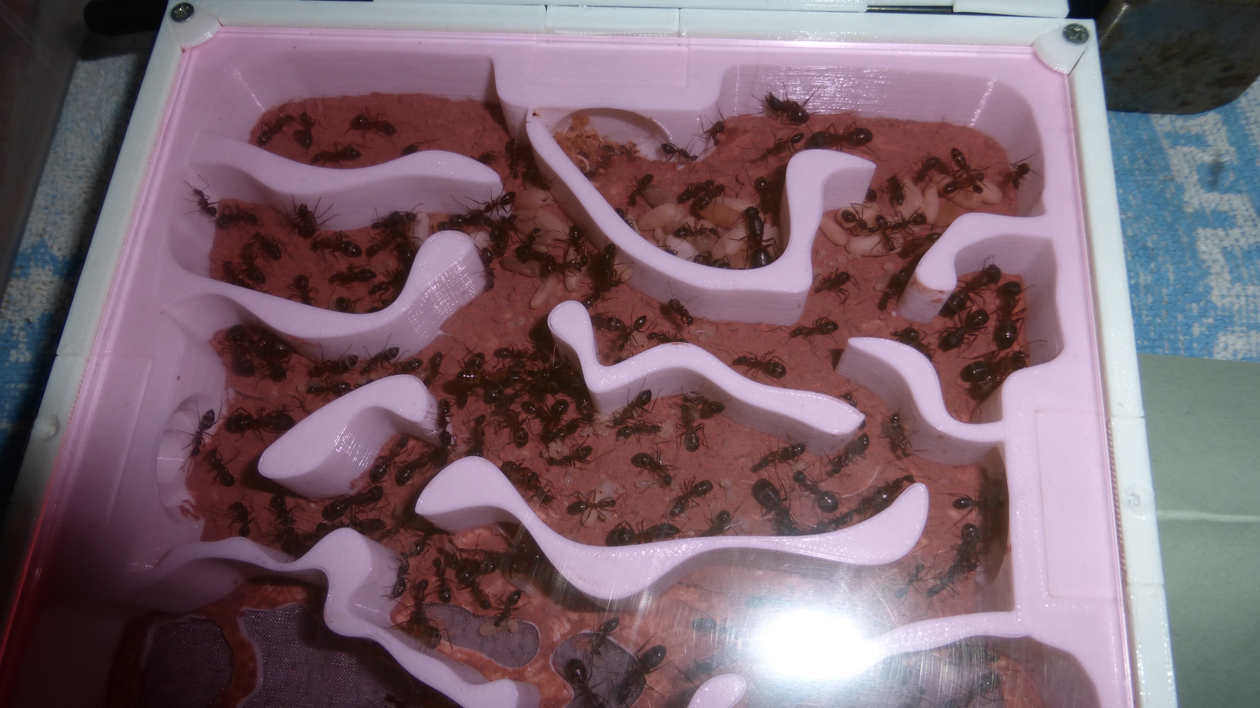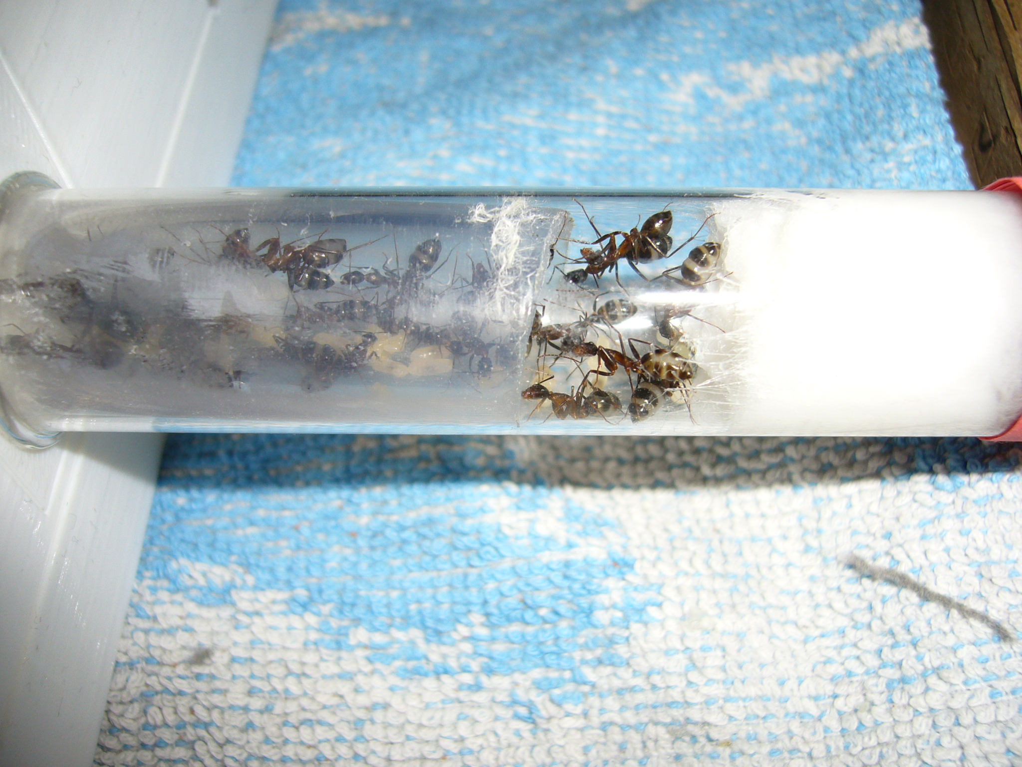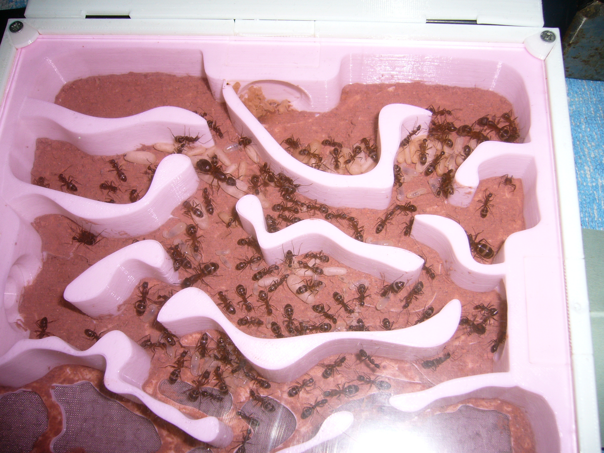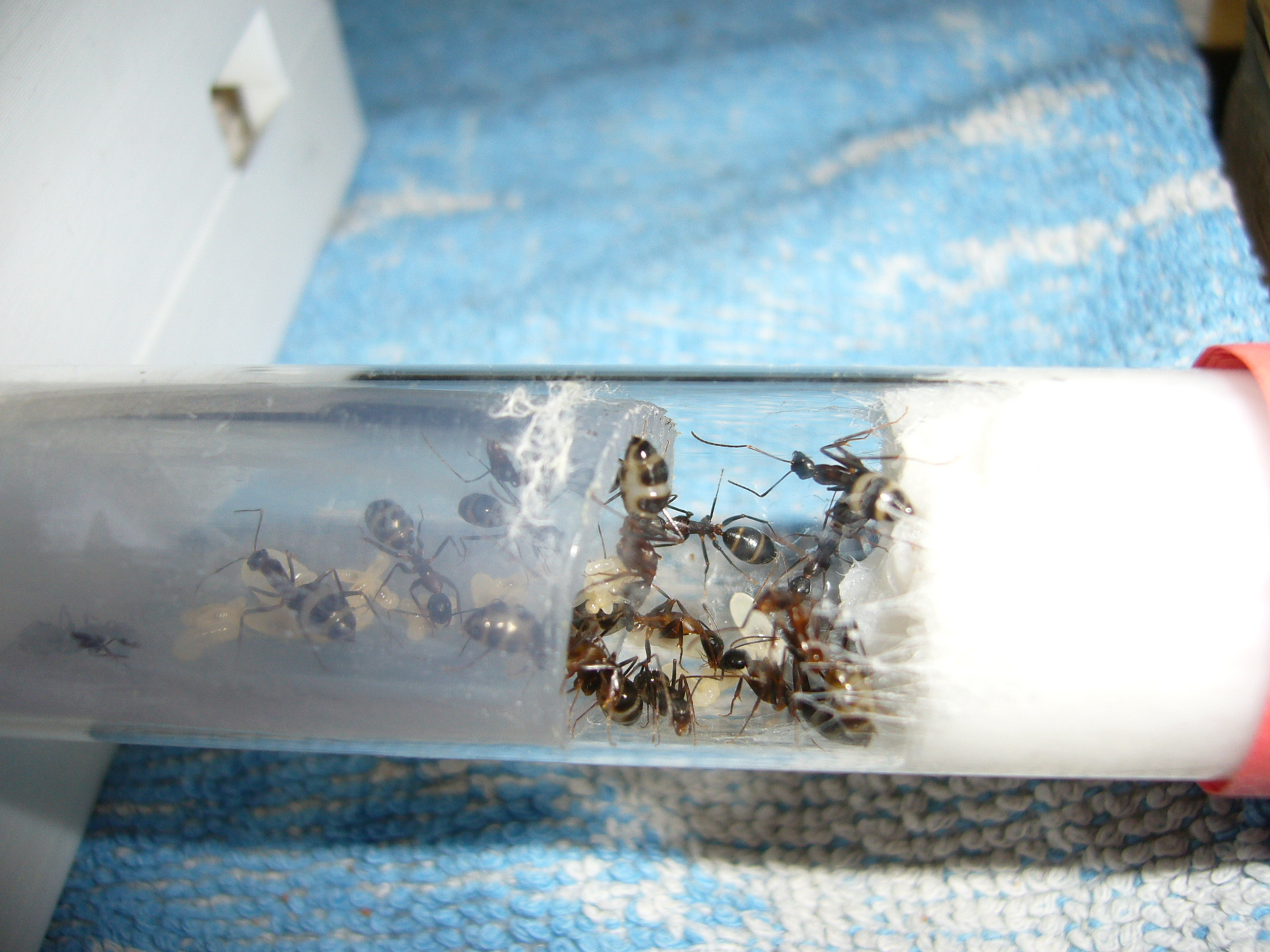 Brut zu versorgen (die neue Kamera ist super für so kleine Ameisen, genug Beleuchtung vorausgesetzt). Frage mich wann die vorhaben in die
