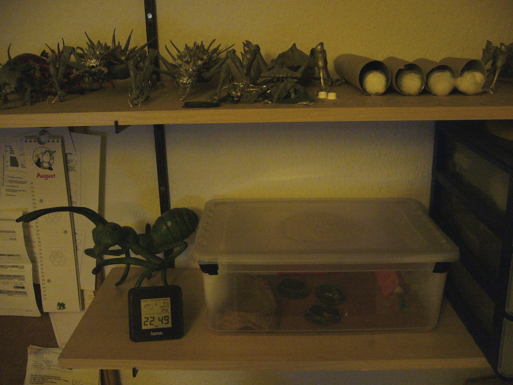Formikariengröße: mindestens 30x20cm-Arena für Jungkolonien im Reagenzglas, später mehrere 60x30cm-Becken und viel Schlauch. Die aktuelle Größe der Anlage sollte sich an der Koloniegröße orientieren auf Dauer kann das ziemlich groß werden.