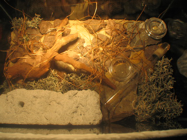 Im moment wohnen die Mädels immernoch in ihrem Reagenzglas wo sie sich auch Pudelwohl fühlen! Hab das RG im Sand eingebraben, damit sie es darin dunkel haben! Ich denke ich werde warten bis sie es nicht mehr Mögen und in meinen angebotenen Ytong Stein einziehen!