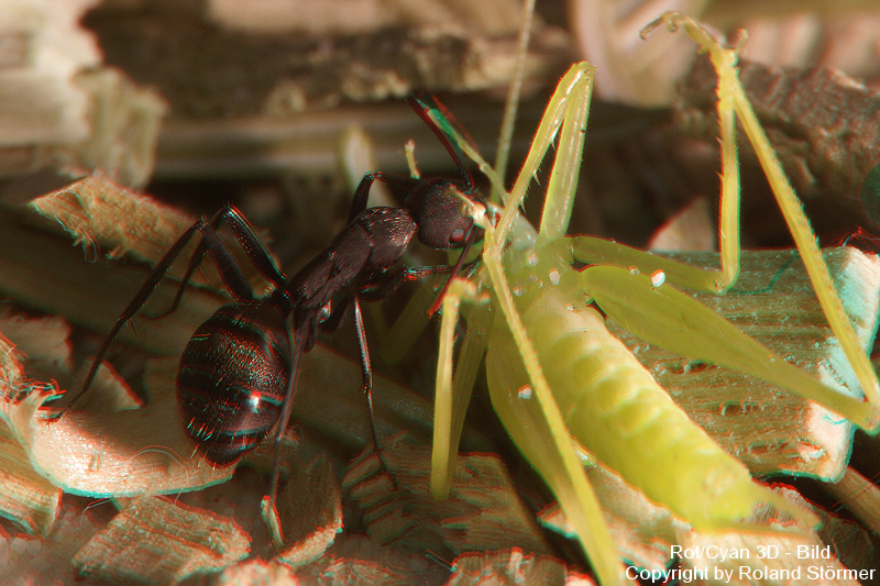 Das Fotografieren von Ameisen in 3D ist extrem schwierig. Die Winterruhe meiner C-c erlaubte ein schnelles Bild (bzw. 2 Bilder - fĂĽr die 3D Darstellung) zwischendurch.