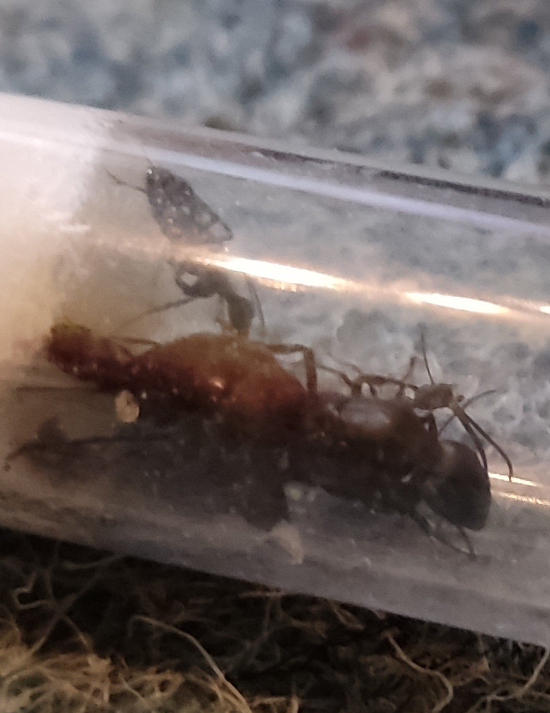 Ameisen sind robuste Tiere und die Gründung geht oft trotzdem gut. Gerade Camponotus kann aber sehr empfindlich reagieren, was Störungen in der Gründungsphase angeht. Bei dieser Gattung hört man oft von Brutfraß in Stress-Situationen, und kleine Kolonien können mit Ausfall einer Brutphase reagieren oder sogar einer Monate dauernden Pause. Ich habe ein dutzend Königinnen verschiedener Camponotus Arten aus Afrika mitgebracht vor zwei Monaten. Die meisten haben nun 5-15 Arbeiterinnen und gesunde Brut, zwei Kolonien jedoch haben nach der Aufzucht der ersten Arbeiterinnen eine komplette Brutphase übersprungen und haben erst jetzt wieder Eier, und eine Königin ist noch ganz ohne Arbeiterinnen.