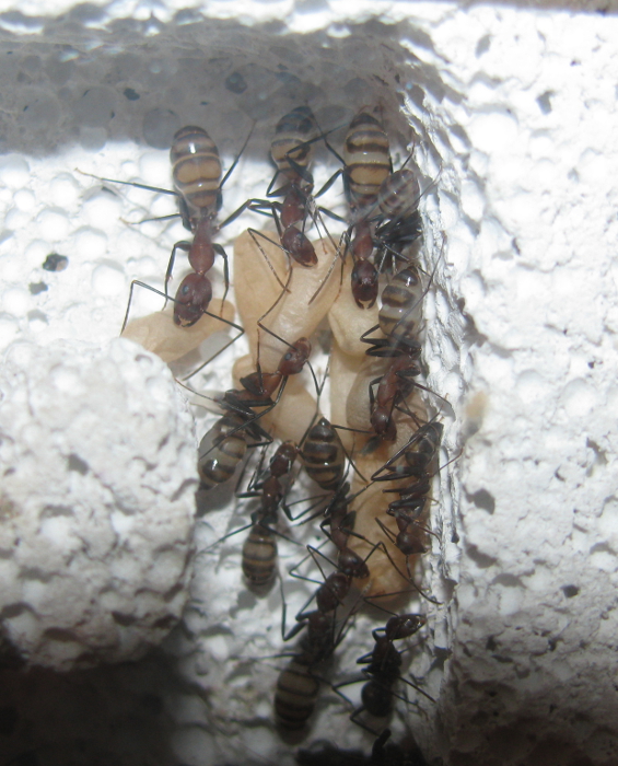 Bei angebotenen Proteinen rekrutieren sie aber gerne, um mit vereinten Kräften das Beutetier ins Nest zu zerren.