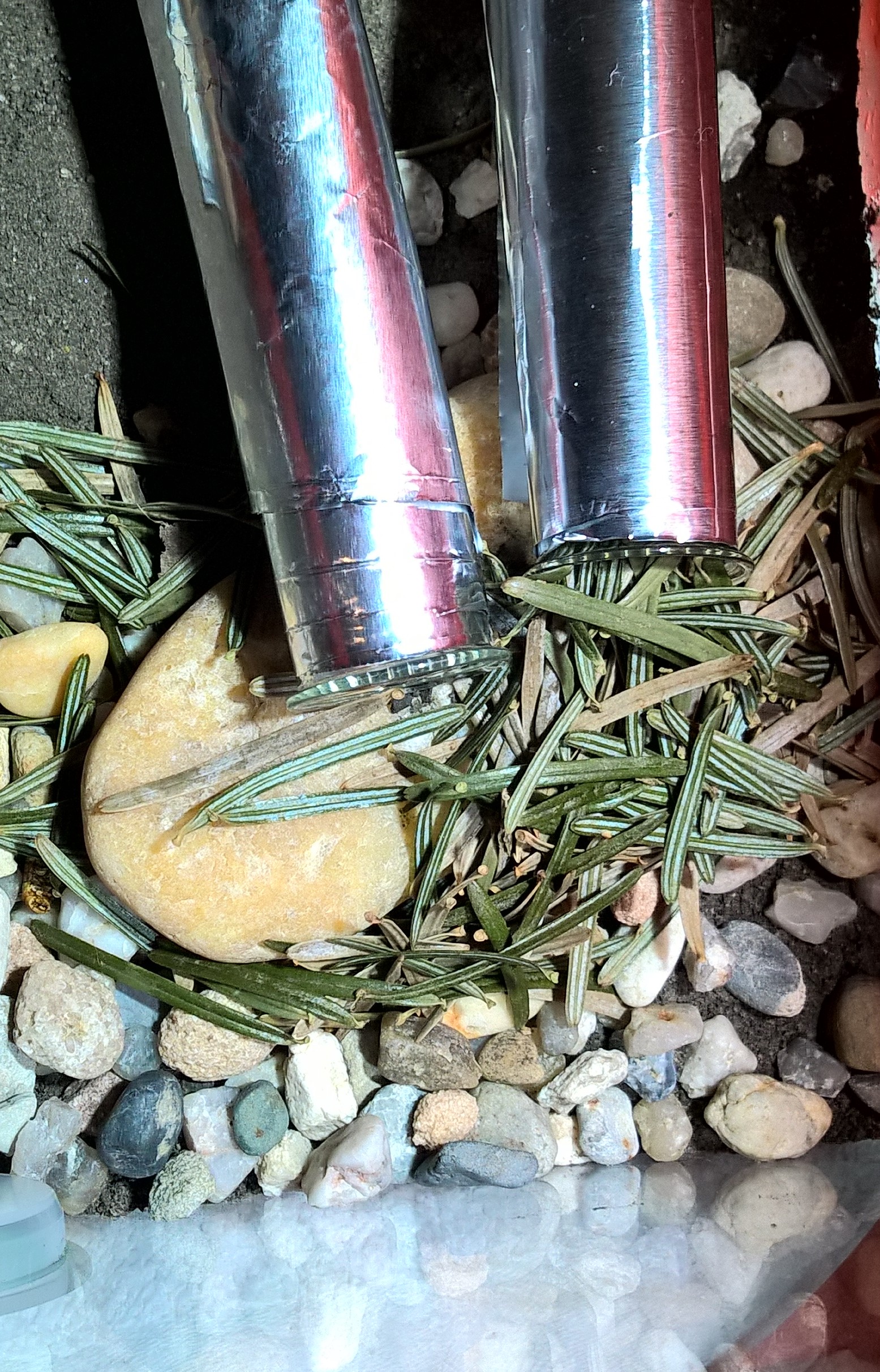 Jetzt zeigen sie übrigens einen regelrechten Bärenhunger: Zwei Heimchen, 2 Mehlwürmer, gefriergetrocknete Insekten, Proteine - alles weg, und dies bei zwei fouragierenden Pygmäen-Arbeiterinnen. In das RG schaue ich nicht, sonst bricht ja ihr ganzes Fichtennadeln-Bauwerk zusammen.
