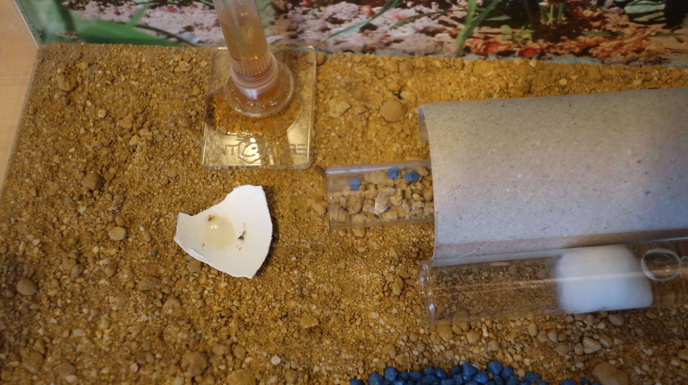 Wogegen aber nichts zu helfen scheint sind Erschütterungen. Der kleinste Schlag gegen das Reagenzglas oder nur ein unsanftes ablegen in die Arena führt zu Panikattacken. Ich bin mit der Zeit schon seehhr vorsichtig geworden. Hierbei könnte ein weicher Untergrund helfen. Leider habe ich gerade nichts passendes rumliegen.
