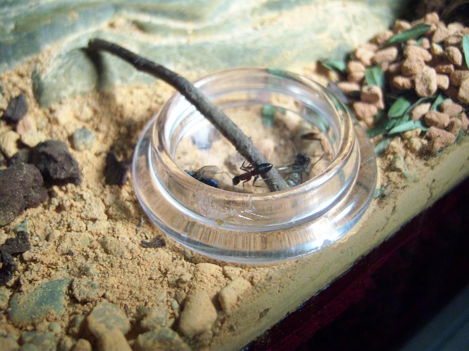 Platz 5: MehlwurmMein neuster Versuch. Habe bei vielen Camponotus ligniperdus Haltern gelesen, dass gerne Mehlwürmer genommen werden. Hmm bei meinen wohl nicht. Habe es bisher auch erst einmal getestet (gestern) und den Tag zuvor haben sie auch keine Fliege eingetragen, also brauchten sie vielleicht gerade keine Proteine und heute war sie ihnen vielleicht schon zu alt, denn heute haben sie wieder Fliegen eingetragen, den Mehlwurm aber nicht beachtet. Ich werde es weiter versuchen und dann nochmal berichten.