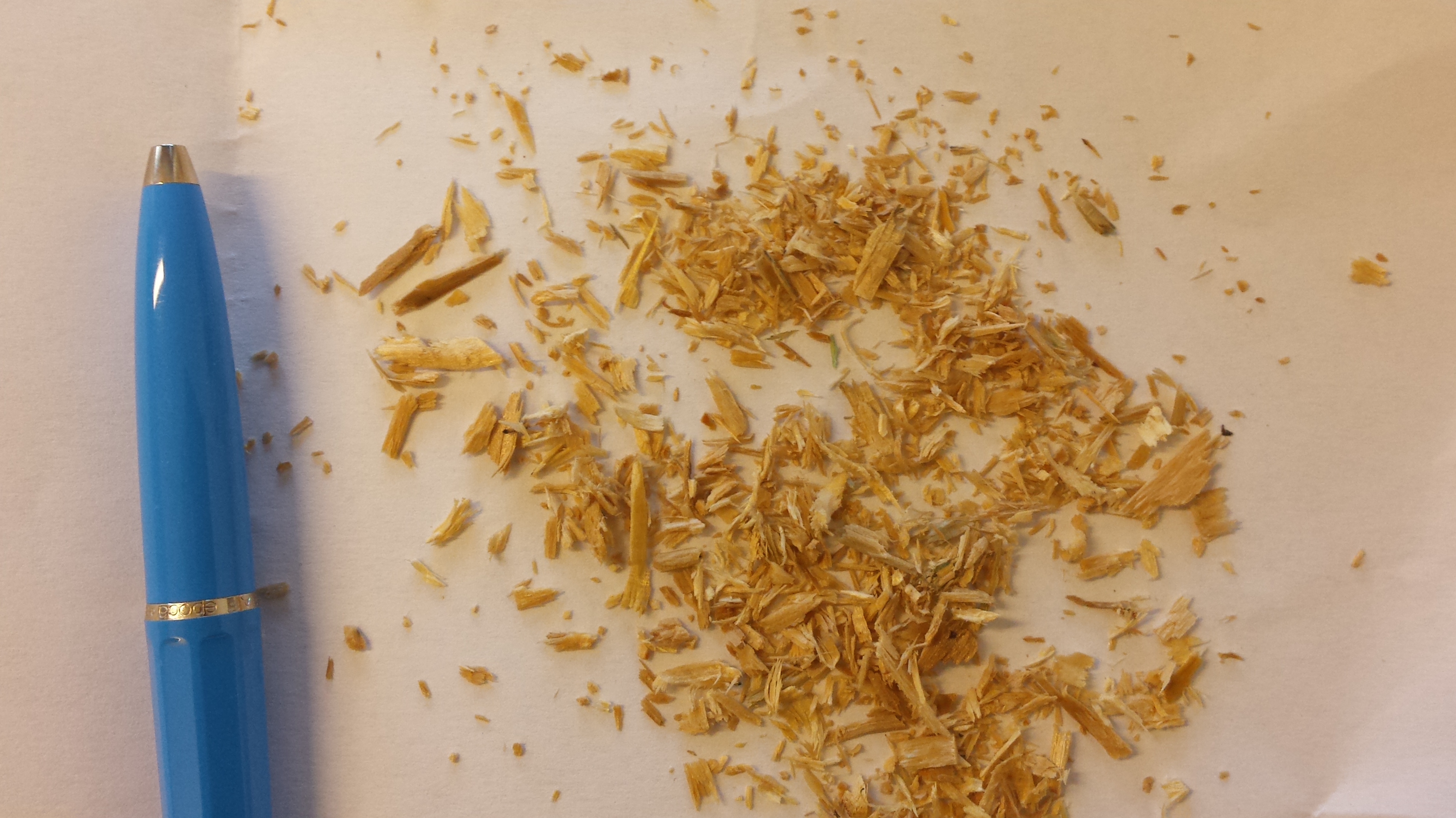 Das was Du da hast, sind wohl normale Sägespäne, aber überleg mal von welcher Größe sie sein müssten, dass sie eine stattliche Major noch raus beissen könnte.