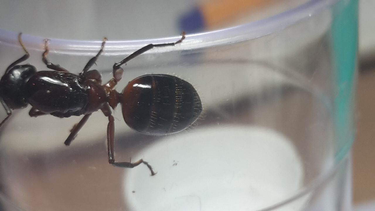 War direkt neben einem Waldameisenhaufen (Formica F. s. Str.), deswegen dachte ich zuerst es sei eine Formica uralensis Jungkönigin, wegen dem schwarzen Kopf - Blödsinn... Nach einigem Suchen im Netz bin ich mir ziemlich sicher, dass es Camponotus ligniperdus ist. Kann mich da jemand bestätigen?