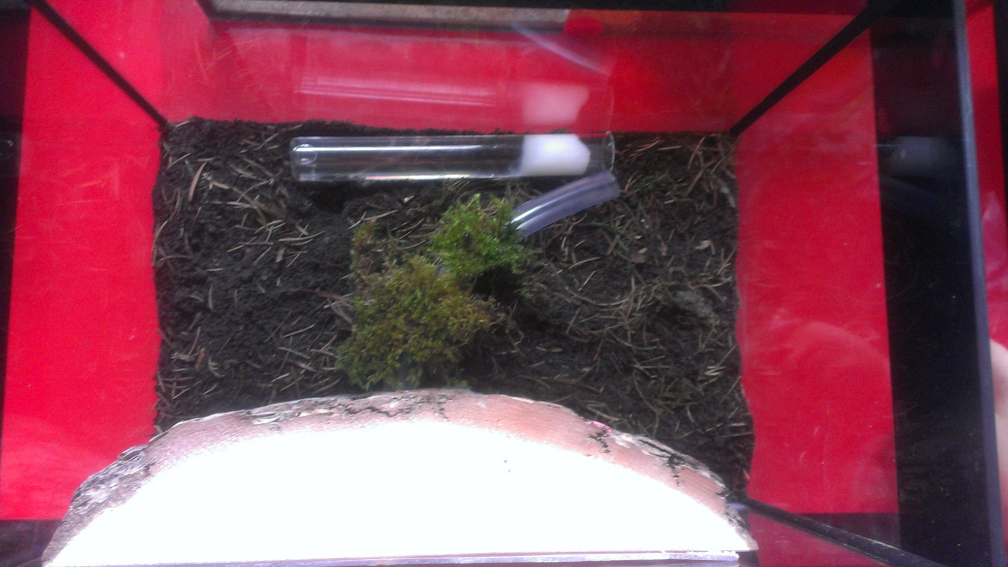 Es ist ruhig im Formicarium, seit die kleinen Rösschen in das Nest/den Schlauch gezogen sind.