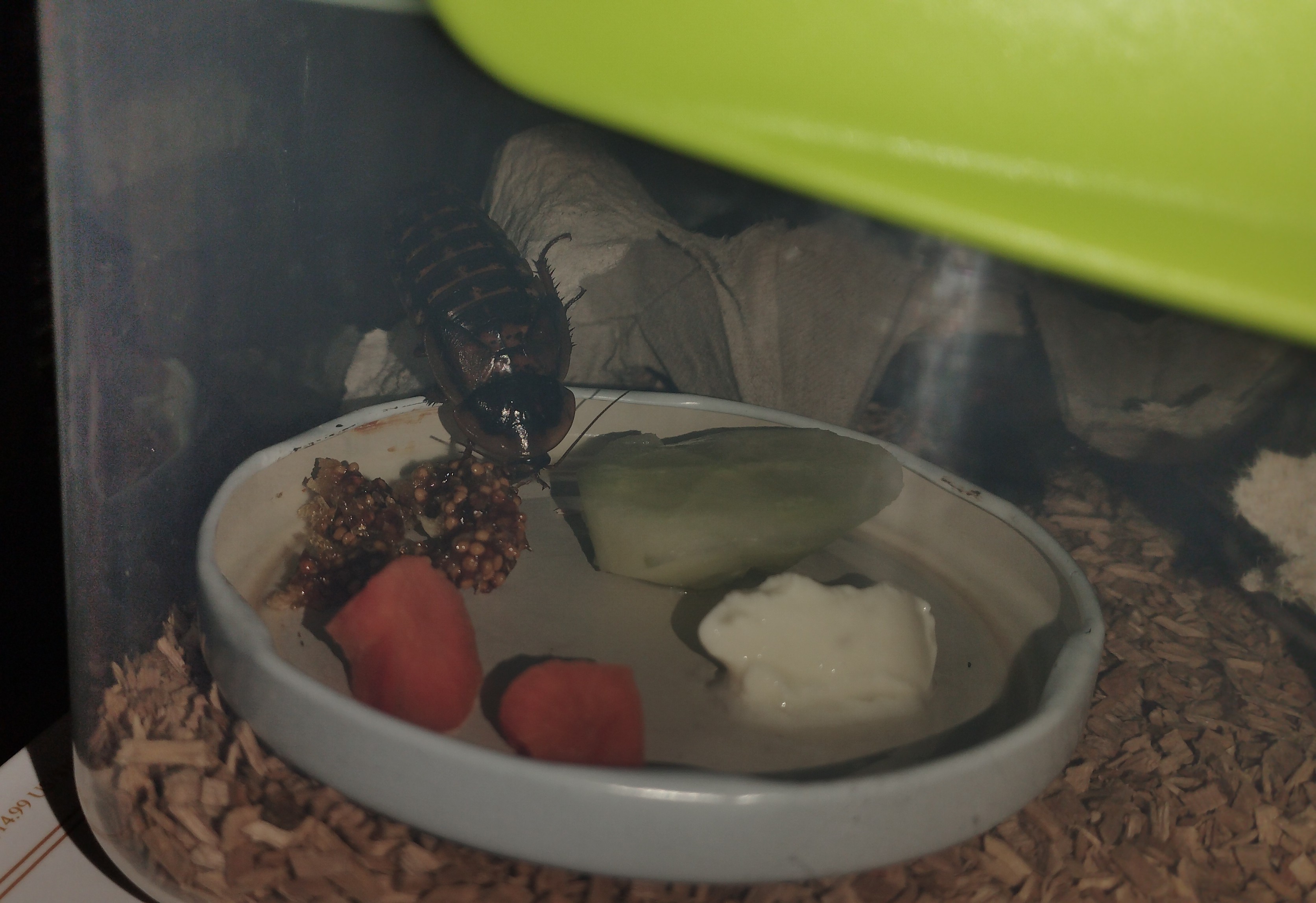 - Habe es sogar Mal geschafft, die Schaben bei der Nahrungsaufnahme abzulichten. Wenn es dunkel wird, trauen sie sich schon raus :D