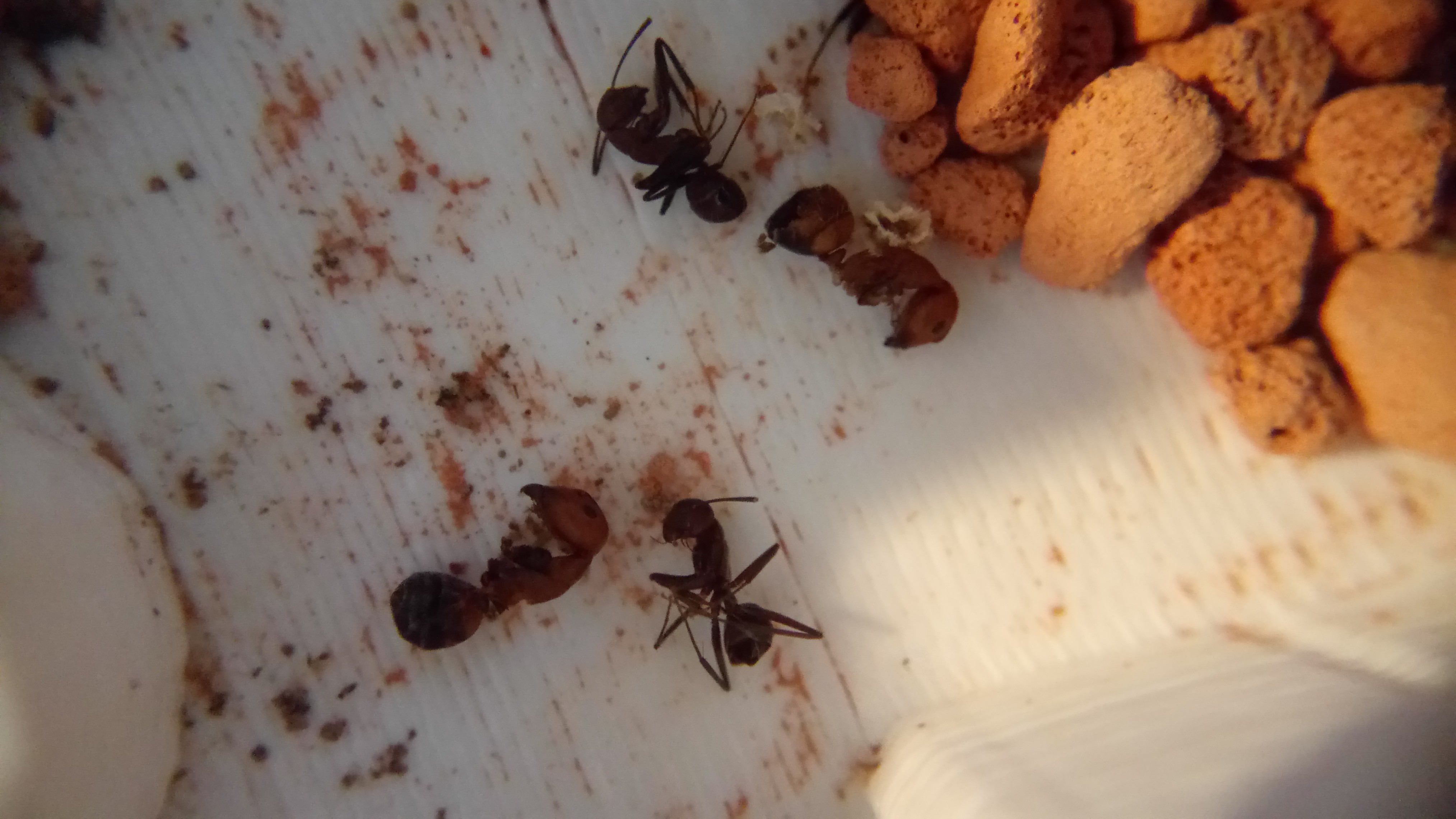 Beide Gynen hab ich aber nicht fotografieren können, da die Ameisen angefangen hatten Watte auf der Nestscheibe zu verteilen.