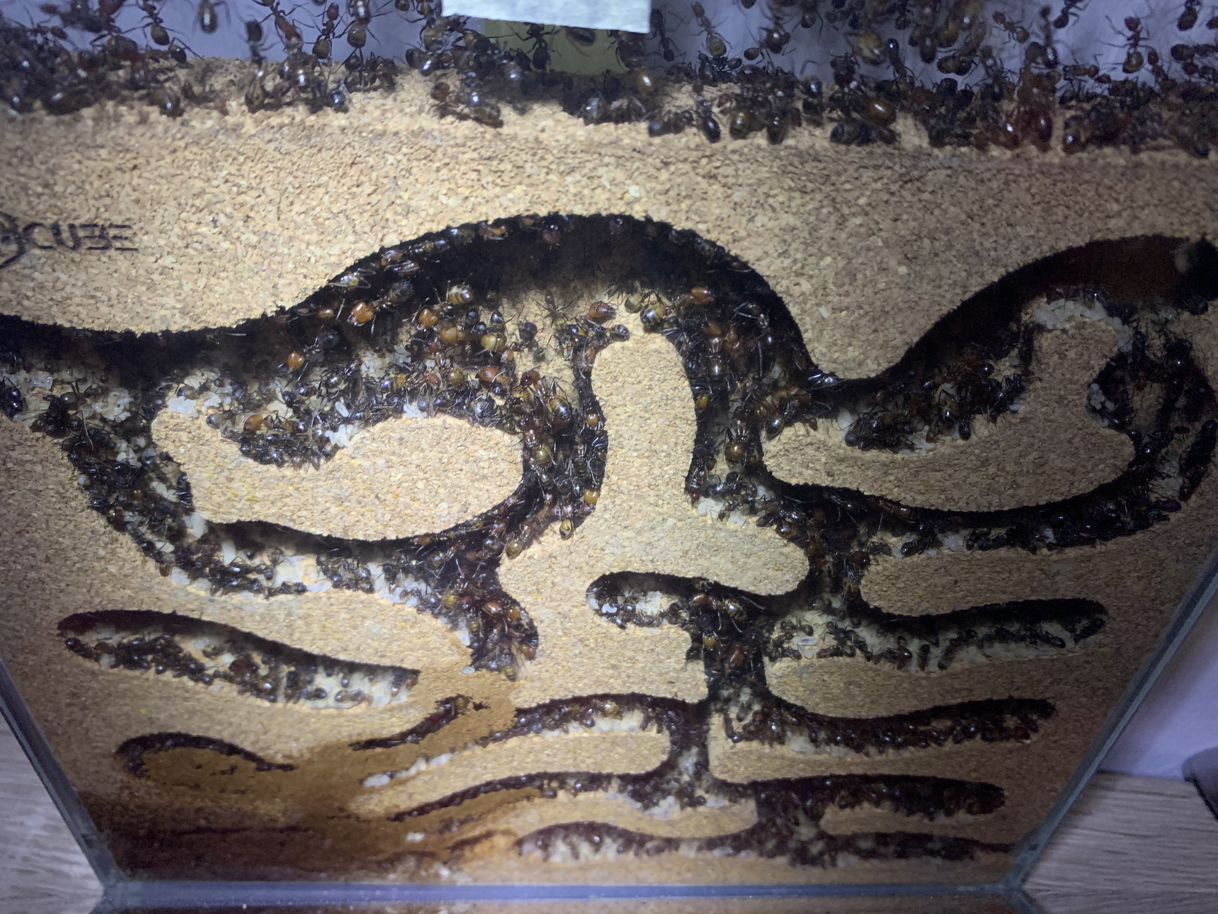 heute kann ich ein paar Fotos zeigen von meinen Camponotus nicobarensis aber so berauschend sind die leider nicht, denn ich habe nur schnell Fotos gemacht, ein paar Tropen Invertzucker in einen Deckel in der Arena geträufelt und fertig, bin dann wieder gleich ins Bett!