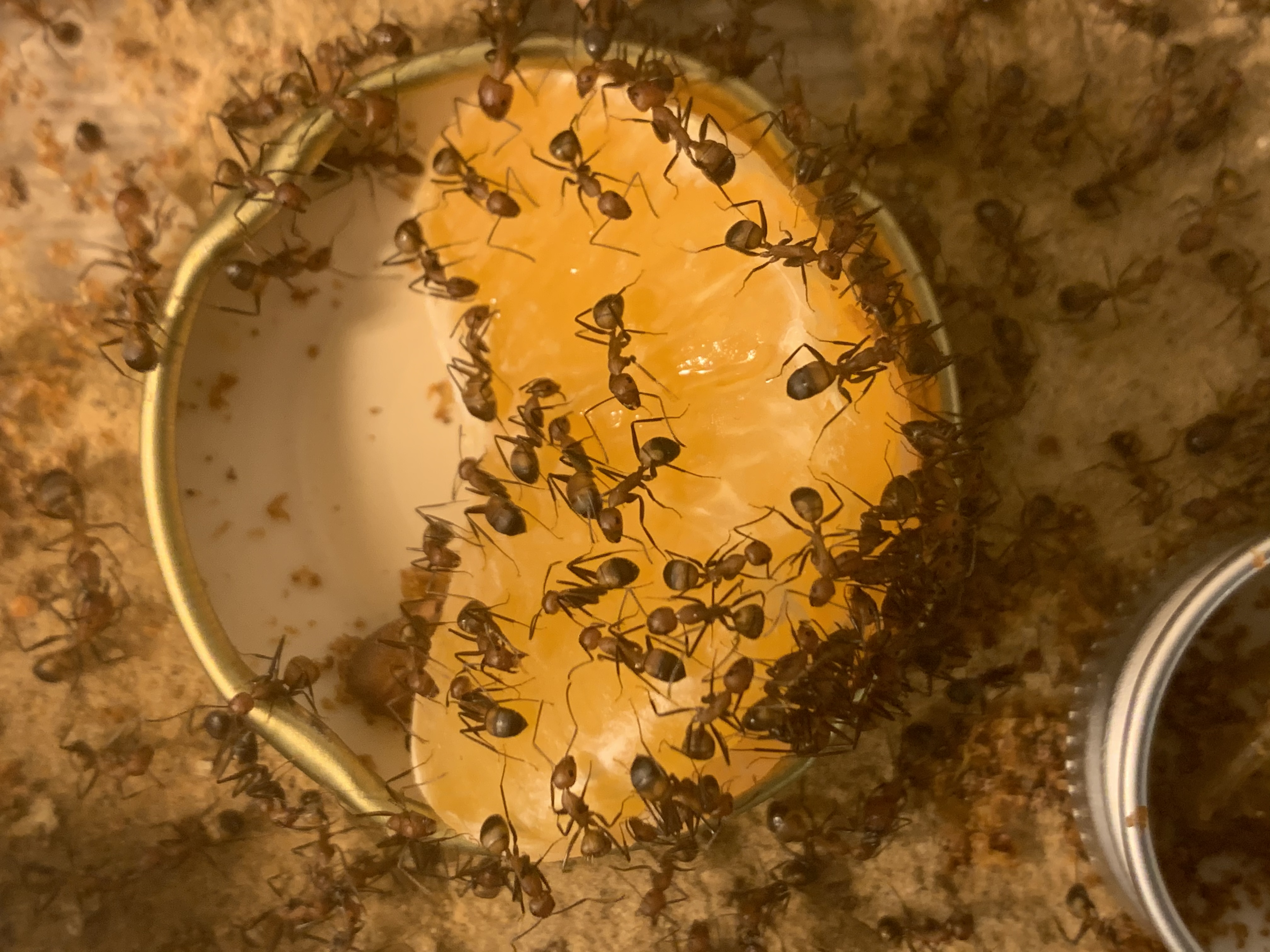 Mandarinen nehmen meine Camponotus nicobarensis weniger gut an als Traubenbeeren. (Bild 195)
