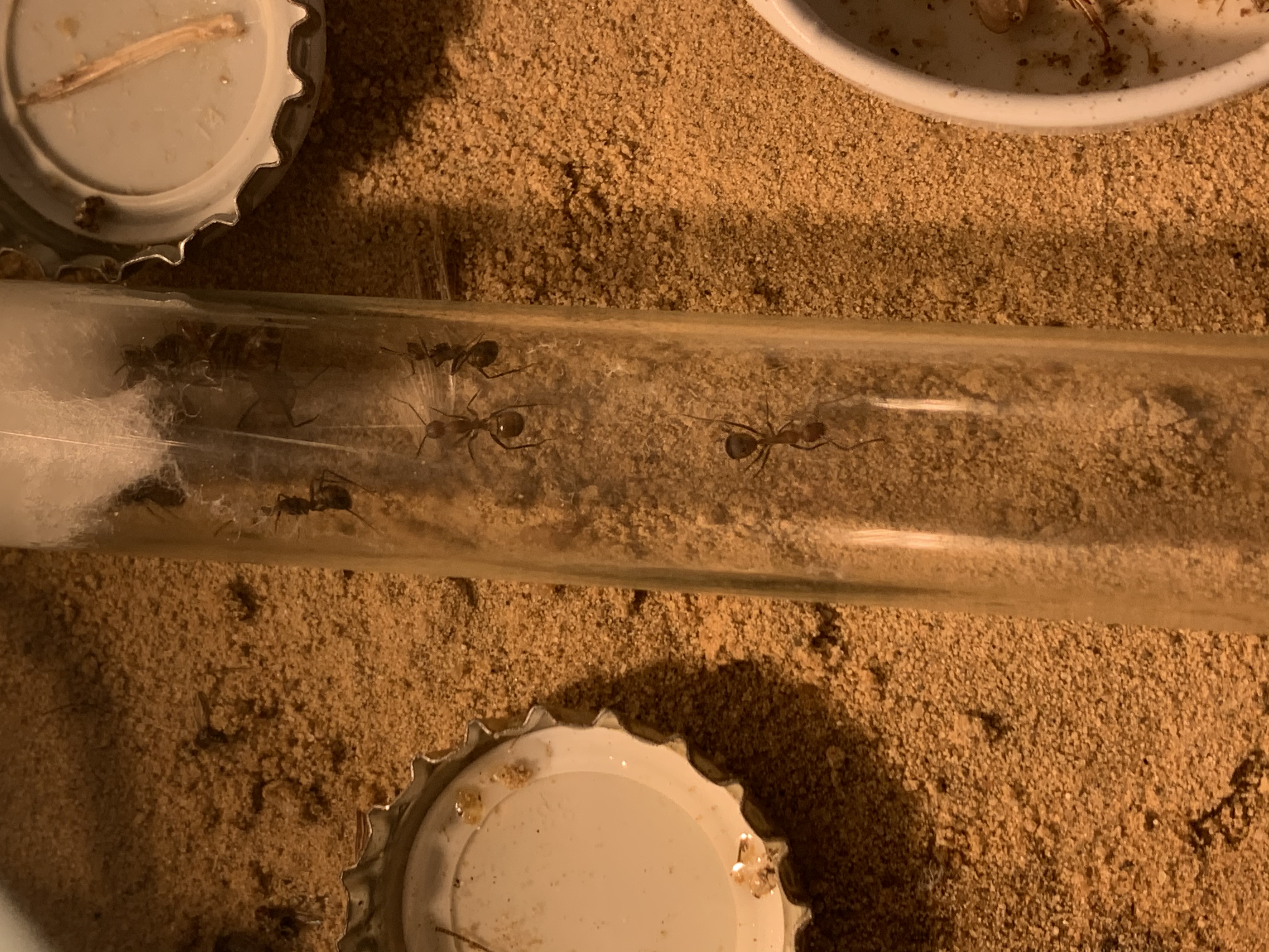 Am 21.Mai habe ich in diesem Thread geschrieben, dass die Ameisen viele Eier in den Verbindungsschlauch geschleppt haben, die haben sie nach ein paar Tagen wieder ins Korknest gebracht. Aber Heute sind wieder sehr viele