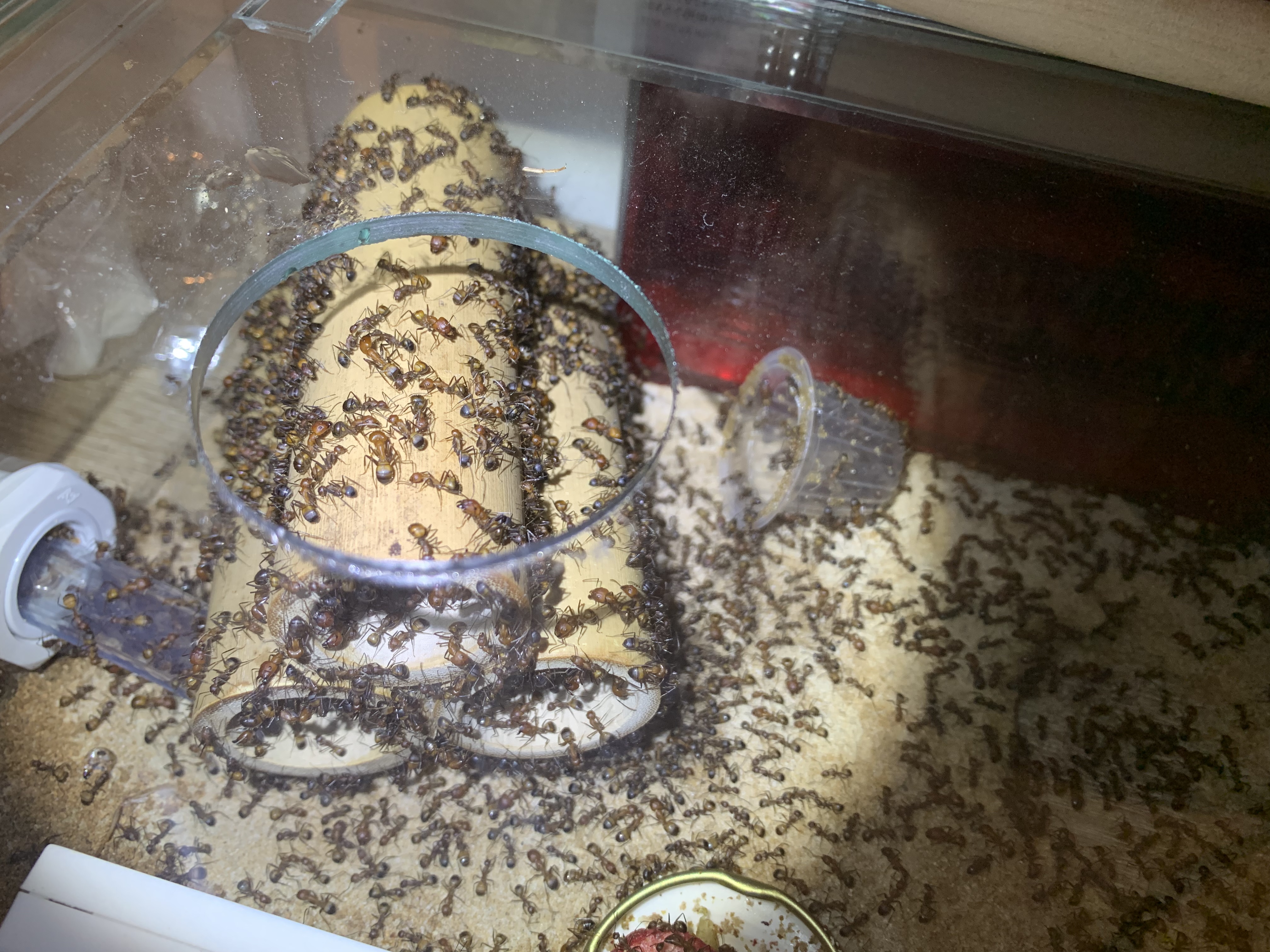 Ich habe meine. Camponotus nicobarensis gestern ein neues Reagenzglas mit Wasser:Invertzuckermischug (~1:1) in die Arena gelegt! Ich habe es wieder mal geschafft ein Reagenzglas so mit Wasser und Watte zu fĂŒllen dass die Watte schön nachrutscht, so ca jedes 5-10 Reagenzglas klappt!