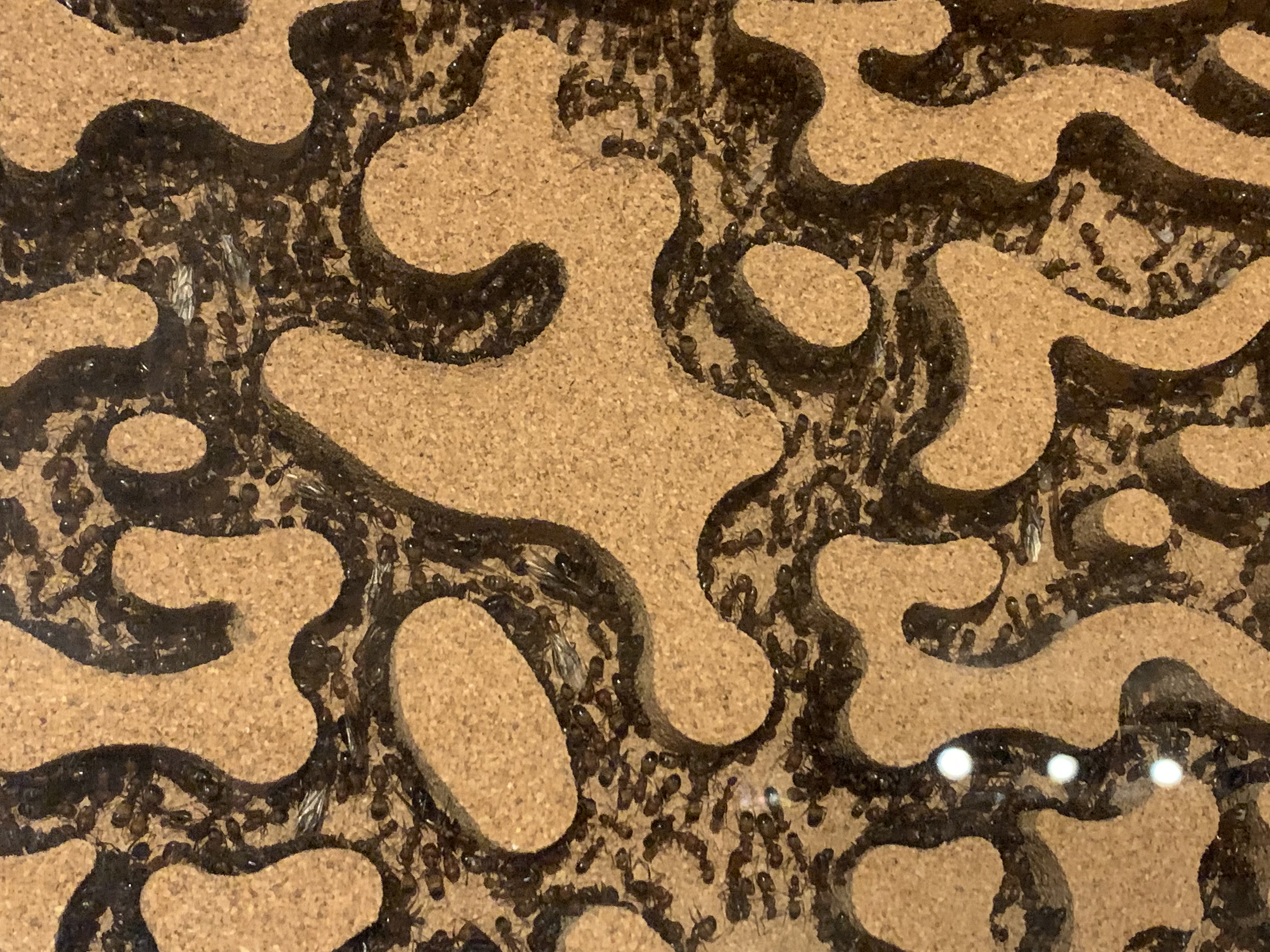 Ja, ich weiß, ich weiß, schon einen Moment nicht mehr gereinigt, aber die Reste sind alle schön trocken weil meine Camponotus nicobarensis alles verwertbare aus dem Futter wegnehmen, manchmal sehe ich Heimchenbeine in den anderen Arenen, aber sonst nix.