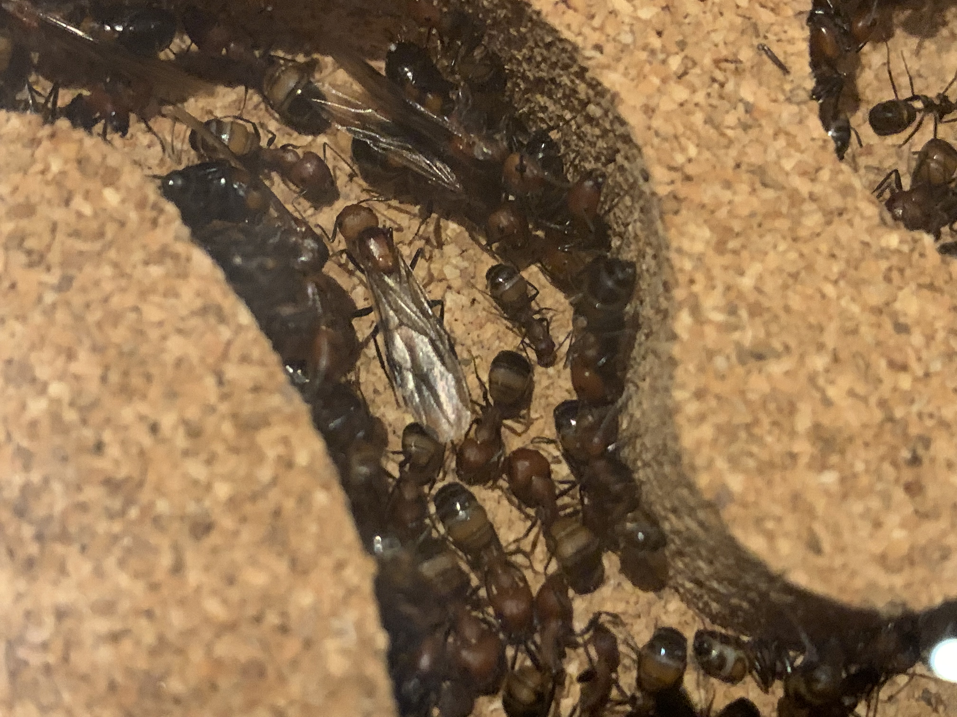 Ich kann sehr viele Jungköniginnen in den Nestern sehen, der nächste Meilenstein neben Nesterweiterungen wird wohl die Aufzucht von Männchen sein, denn solche hatte ich bis jetzt noch keine entdeckt.