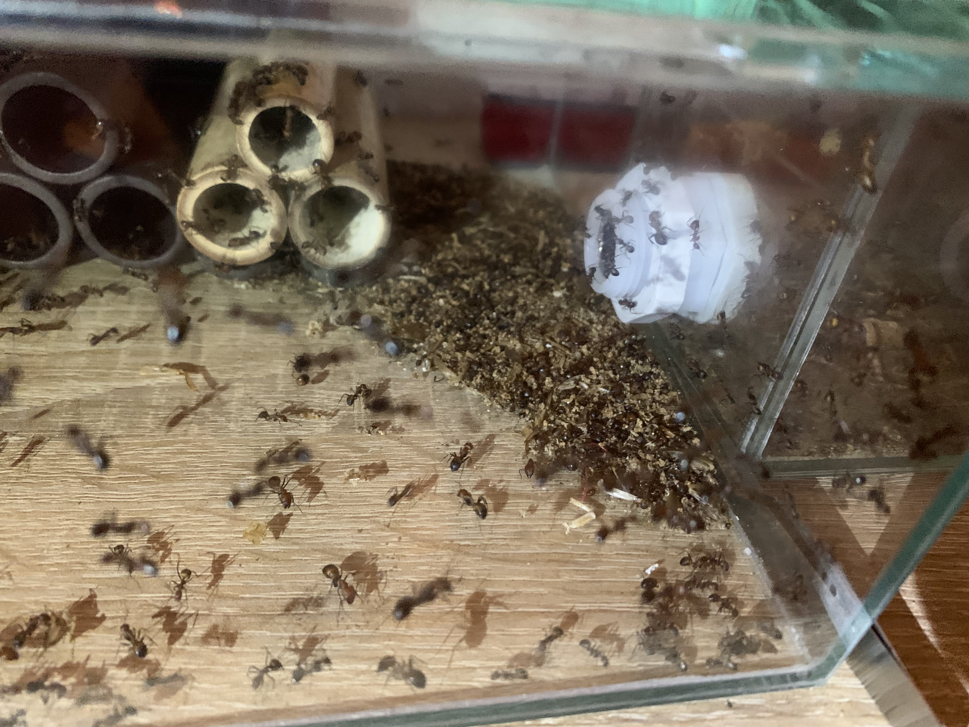 Was dann kommt, Überbevölkerung, überall herumlungernde Ameisen, das macht es schwer, eher unmöglich die natürlichen Verhaltensweisen von Ameisen zu ergründen.