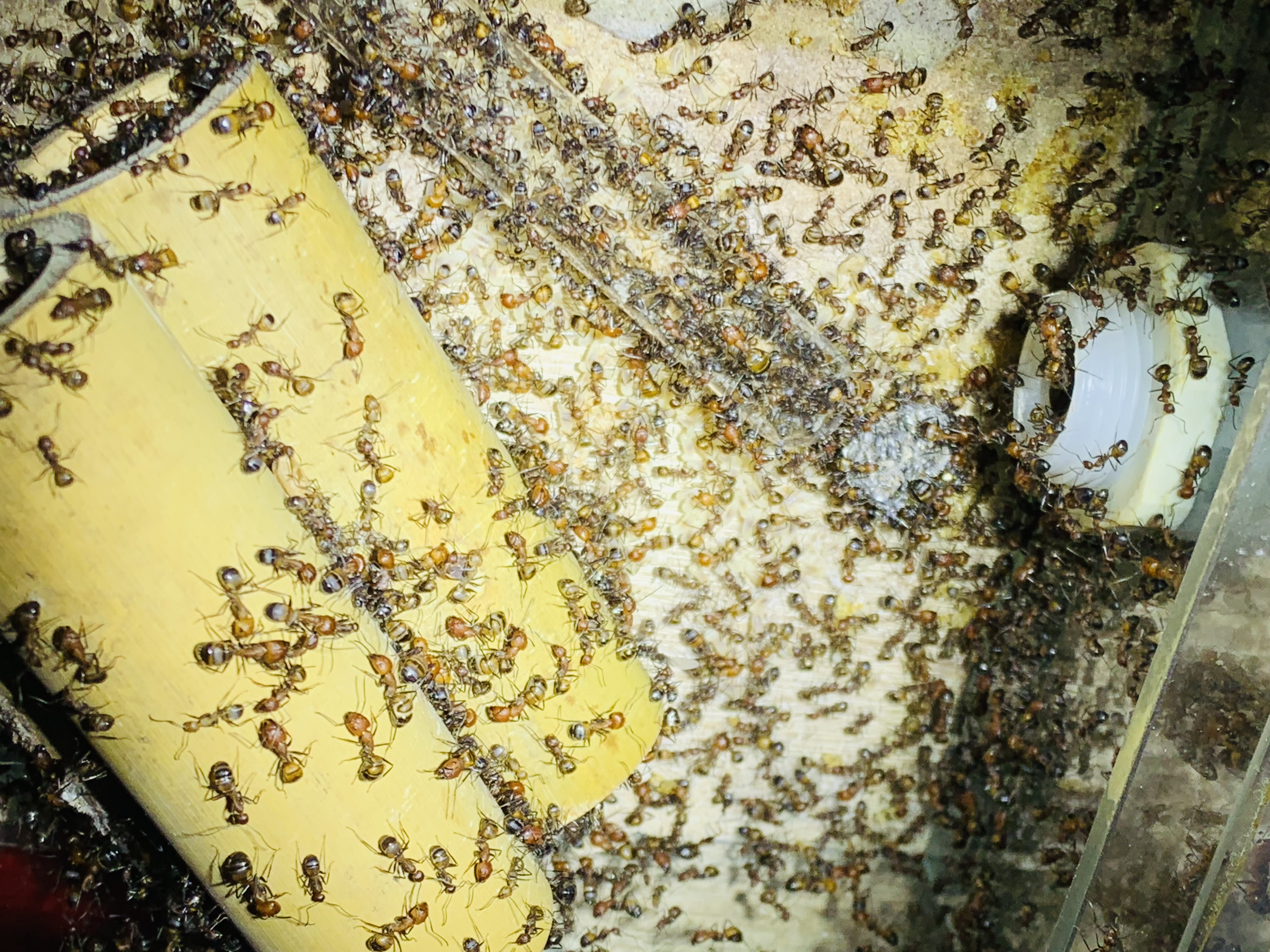 Im Sommer 2021 kam der erste Schwung an Geschlechtstieren sehr viele Jungköniginnen und Männchen wurden aufgezogen. Zuerst ist man richtig stolz, dass sie das machten, jedoch wurden diese irgendwann fast zur Plage. Trotz dem riesigen Potenzial der Jungköniginnen sind sie in der Heim-Ameisenhaltung nur Ballast. Ich habe fleißig Jungköniginnen und später auch Männchen aussortiert.