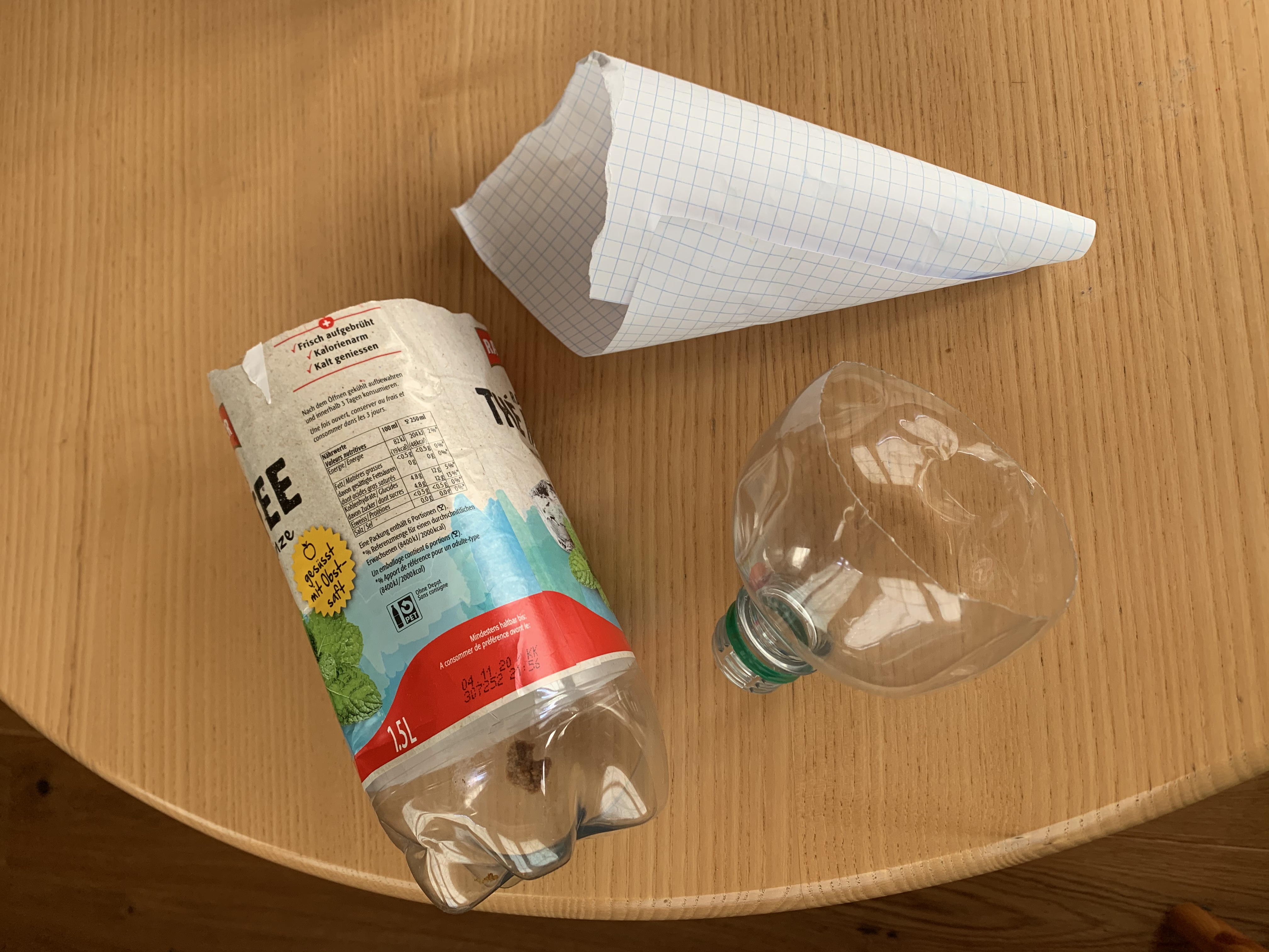 1. PET Flasche oben auseinanderschneiden