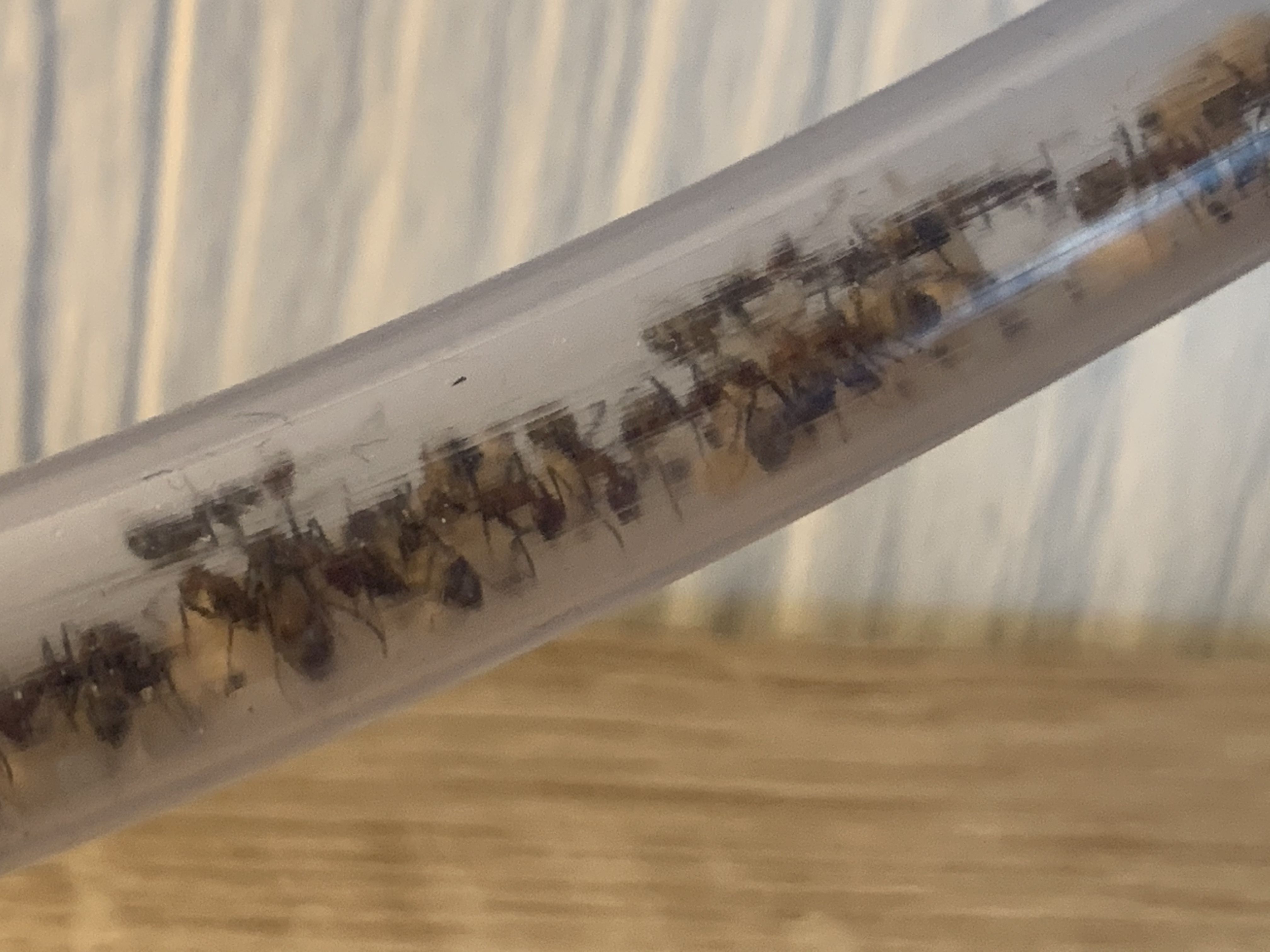 Seit zwei bis drei Tagen haben meine Camponotus nicobarensis angefangen diePuppen vom Nest in den Schlauch zu transportieren und dort zu lagern!