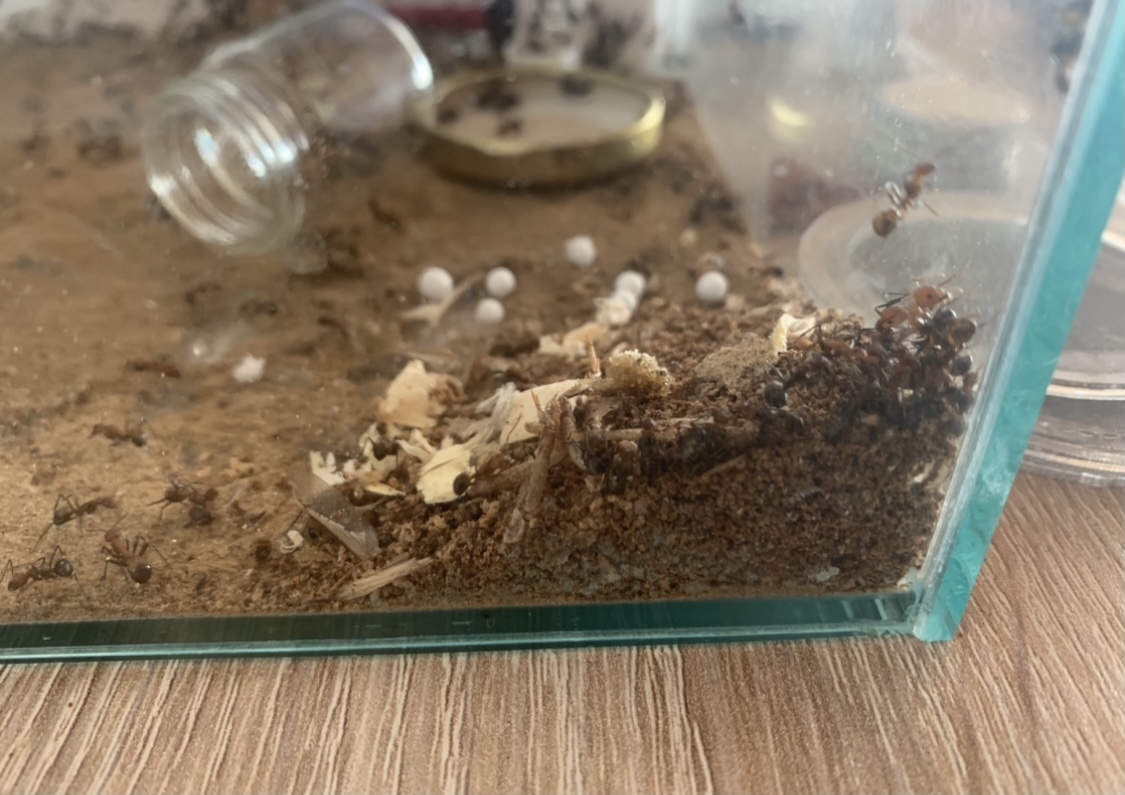 3. Ich habe Gänge vom Nest verschlossen damit sie den Müll in die Arena tragen statt im hintersten Ecke des Nestes! Dies würde ich nicht wieder tun! Camponotus nicobarensis sind sehr Grabfaul!