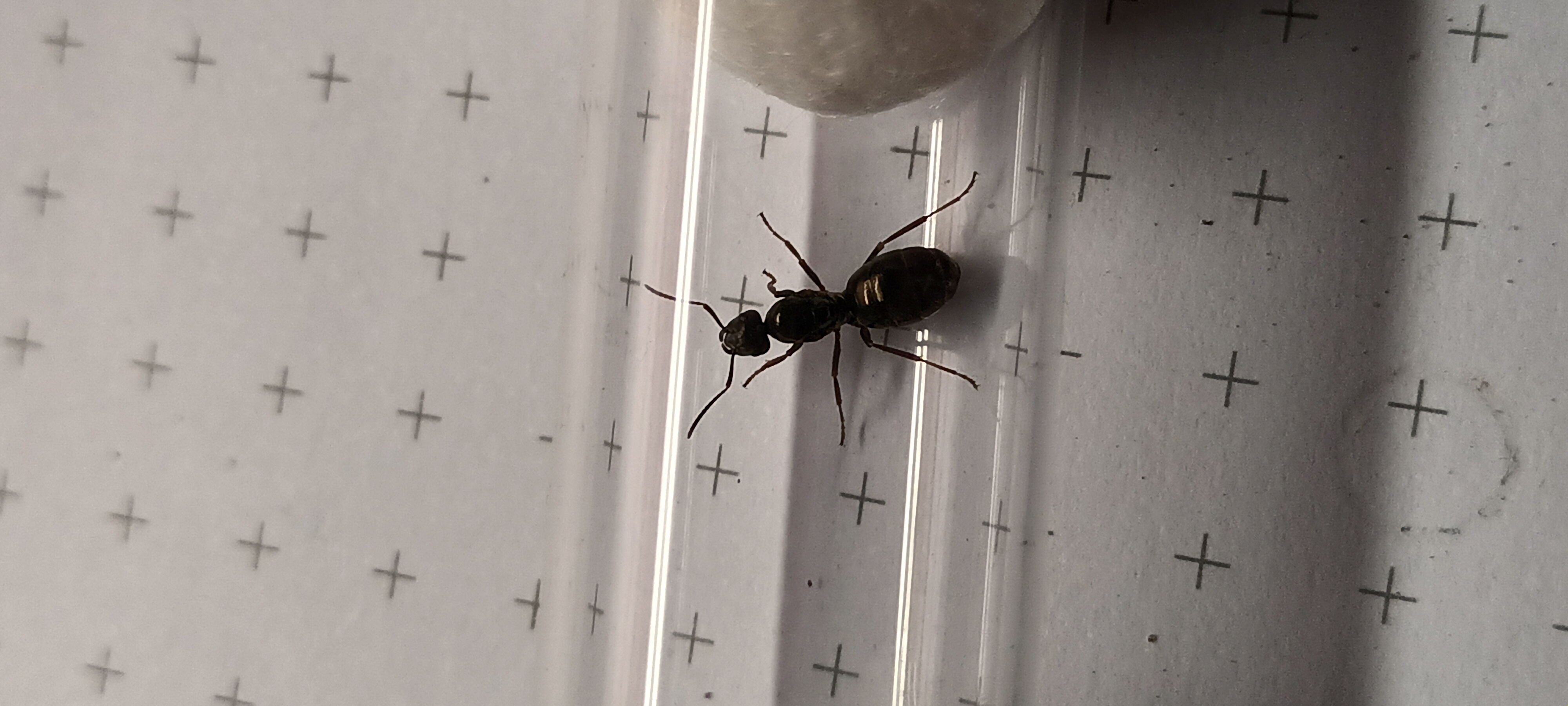Hey Viola, das ist eine Serviformica-Gyne; wahrscheinlich fusca (tiefes schwarz, starker Glanz, kaum behaart, Beine zum Ende
