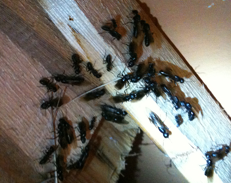 Der ganze Heizungsraum war voll von Camponotus vagus Jungköniginnen und Männchen und aller Größen von Arbeitern!!!