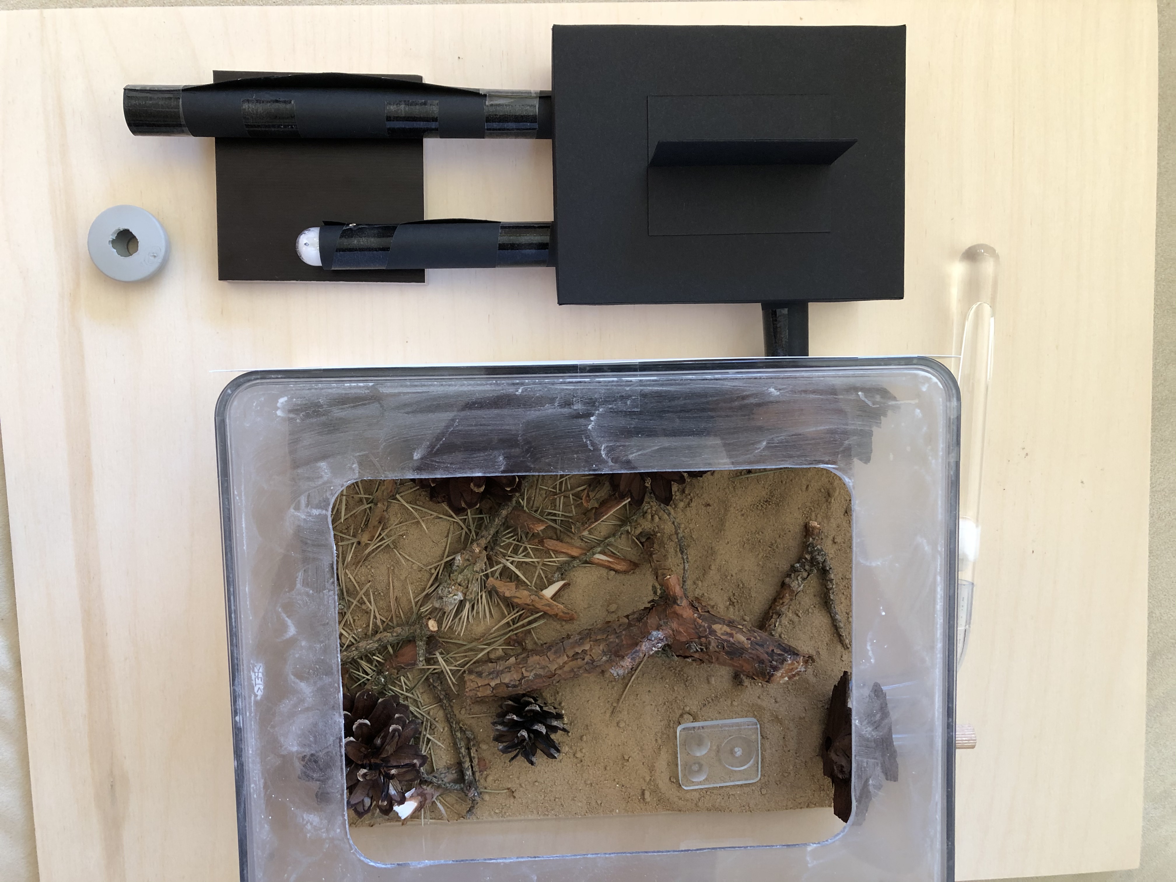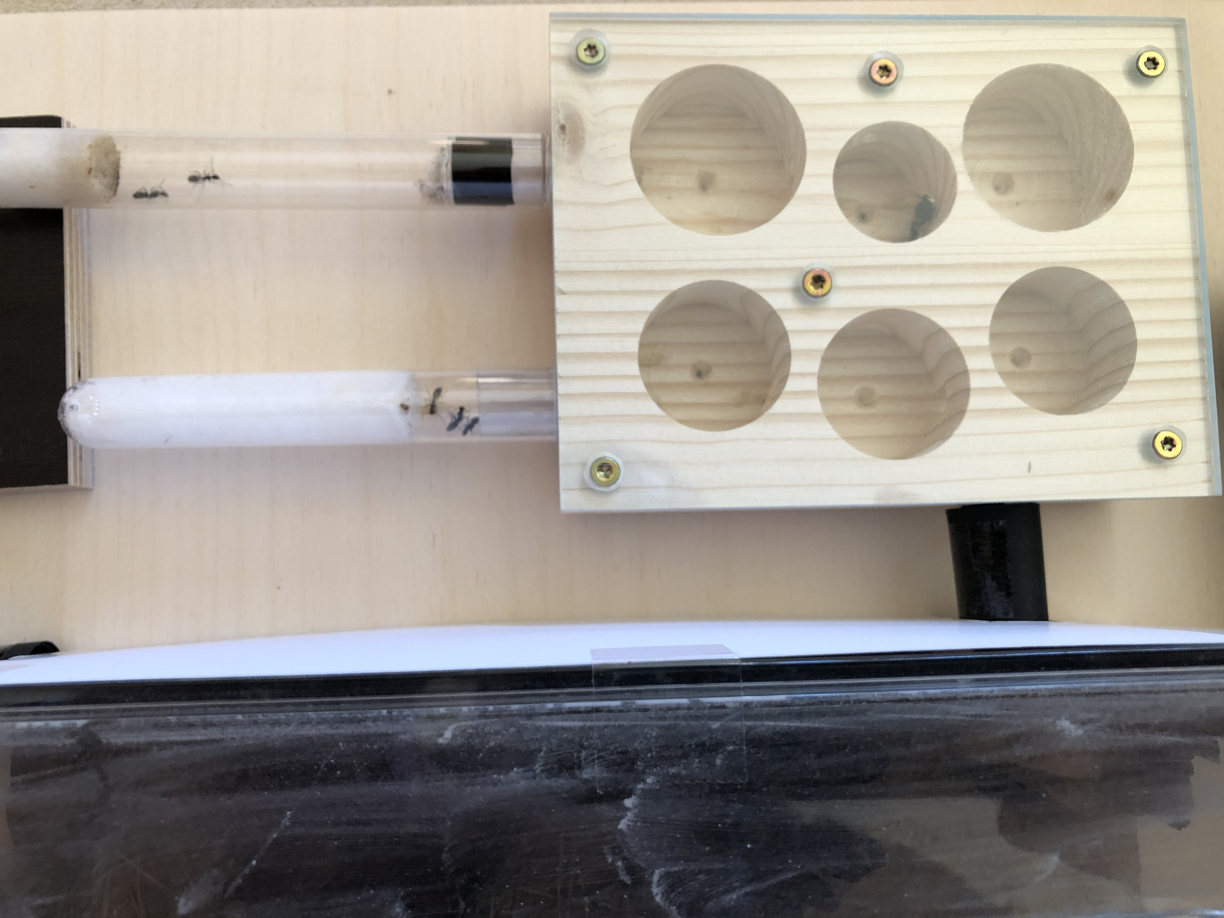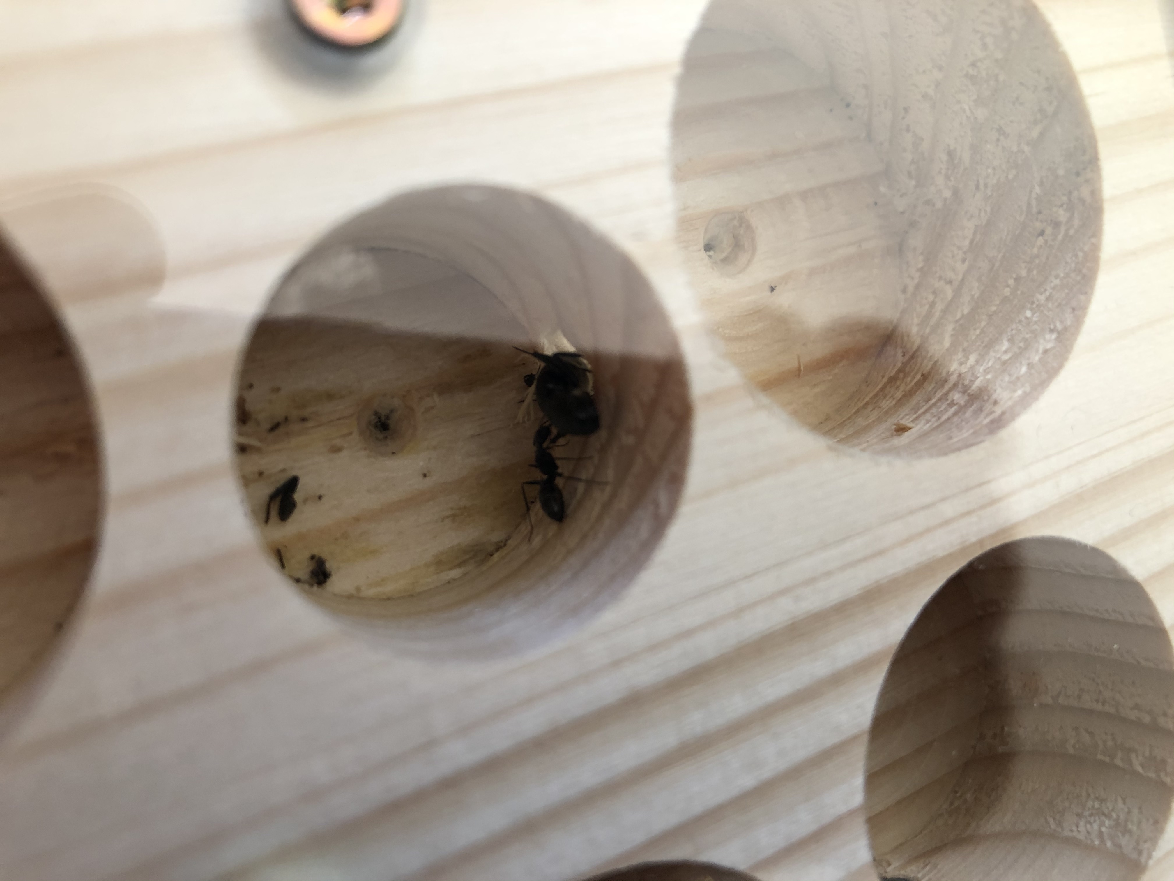 habe dieGyne ende Juni gekauft. Sie war bei Ankunft alleine mit ein paar Eiern und Puppen und eigentlich wohl auf. Im Juli bis Anfang August sind dann nach und nach die Arbeiterinnen geschlüpft, haben auch Zucker- und Honigwasser angenommen sowie ein/zwei Fliegen. Nachgesehen habe ich gut jede Woche einmal, da war Sie eigentlich immer in Bewegung.... zuletzt am 12.08.2020. Am 19.08.2020 sah ich dann den Kopf in der Arena liegen. Das Nest ist selbst gebaut aus Holz, mit angeschlossenen Reagenzglas.
