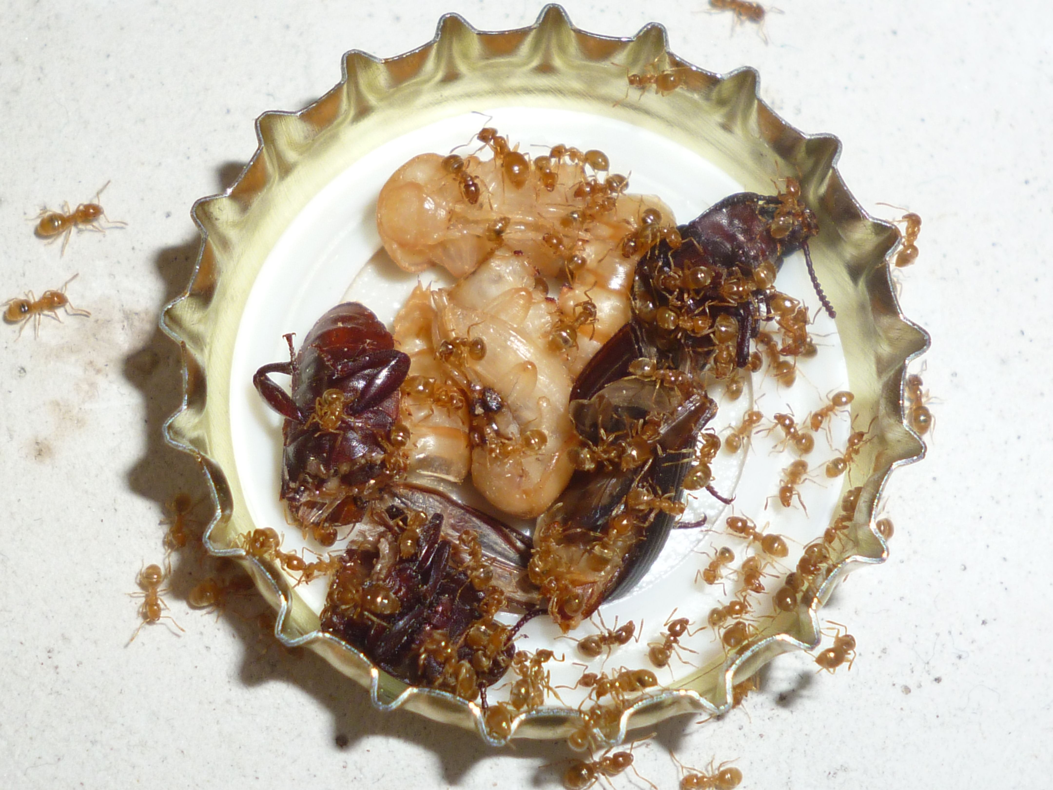 Da sieht man jetzt wie meine Ameisen auf Mehlkäferpuppen und Imagines abgehen. Ich habe irgendwo auch noch ähnliche Fotos mit Mehlkäferlarven, bin grad nur zu faul zum Suchen![]()