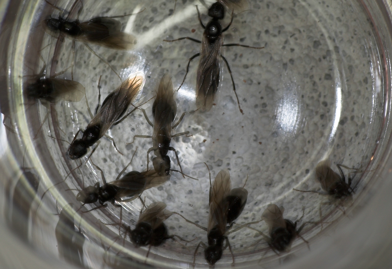 Königinnen waren draußen und liefen wie wild im großen Becken umher, bewacht von ca. 150 Ameisen die ebenfalls sehr aufgeregt wirkten. Was für ein Anblick sag ich euch. So ein misst das ich keine Video Kamera zu hause hatte!