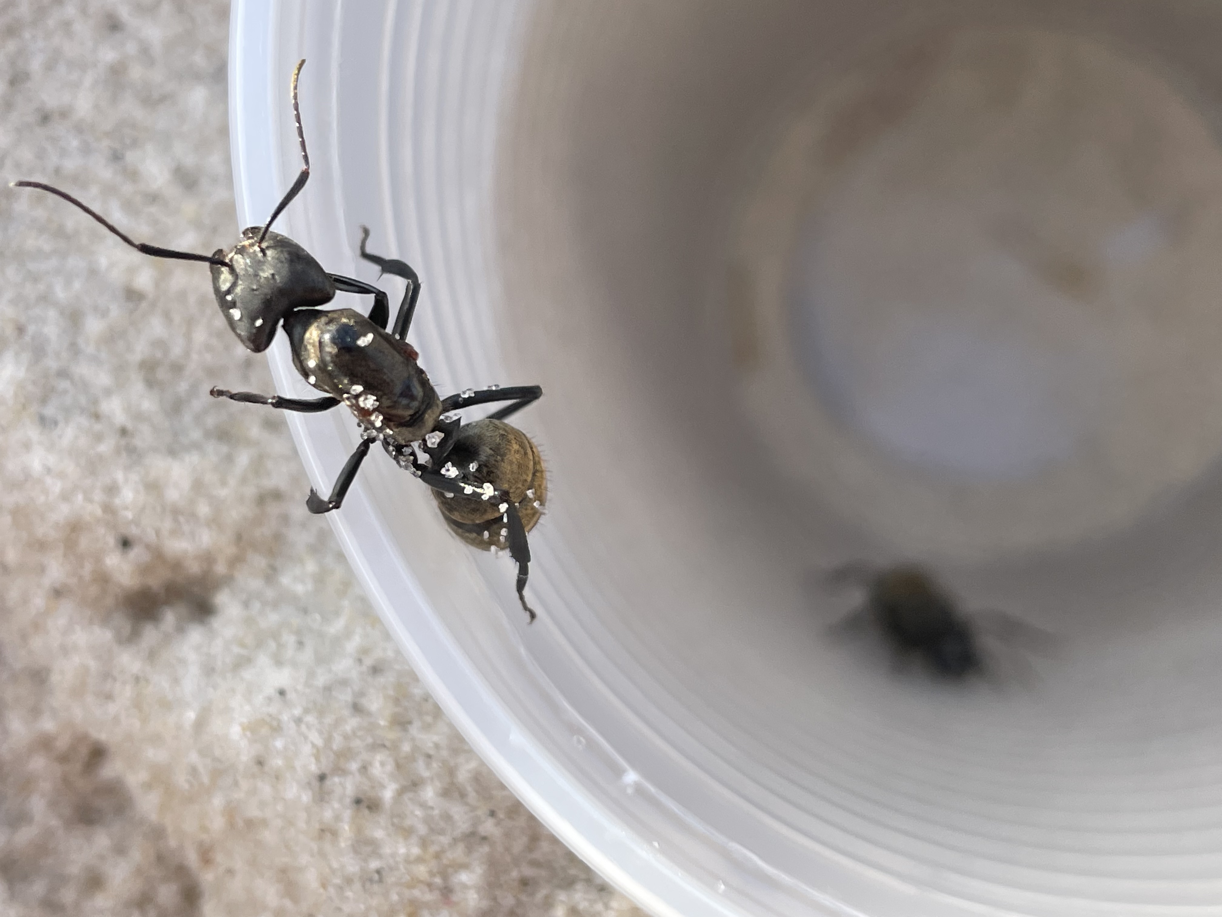 Hier, von gerade eben, das nächste Exemplar. Ca 2,5 cm lang. Sehr beissfreudig, sehr schnell, kenne ich sonst nur von Bullet Ants aus dem Amazonas Regenwald.