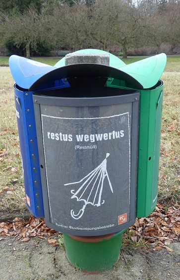 Neben den Postfahrrädern sehen auch die Mülleimer ganz anders aus, als in Hamburg!