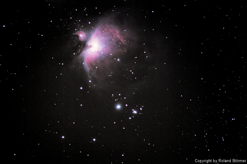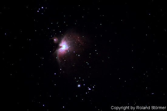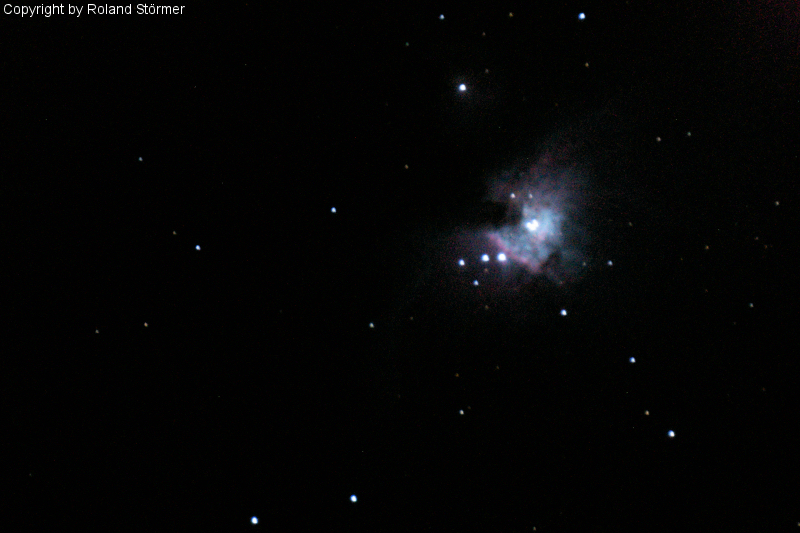 Der Orionnebel. Aufgenommen mit ca. 2250mm Brennweite. Es handelt sich um ein Einzelbild.