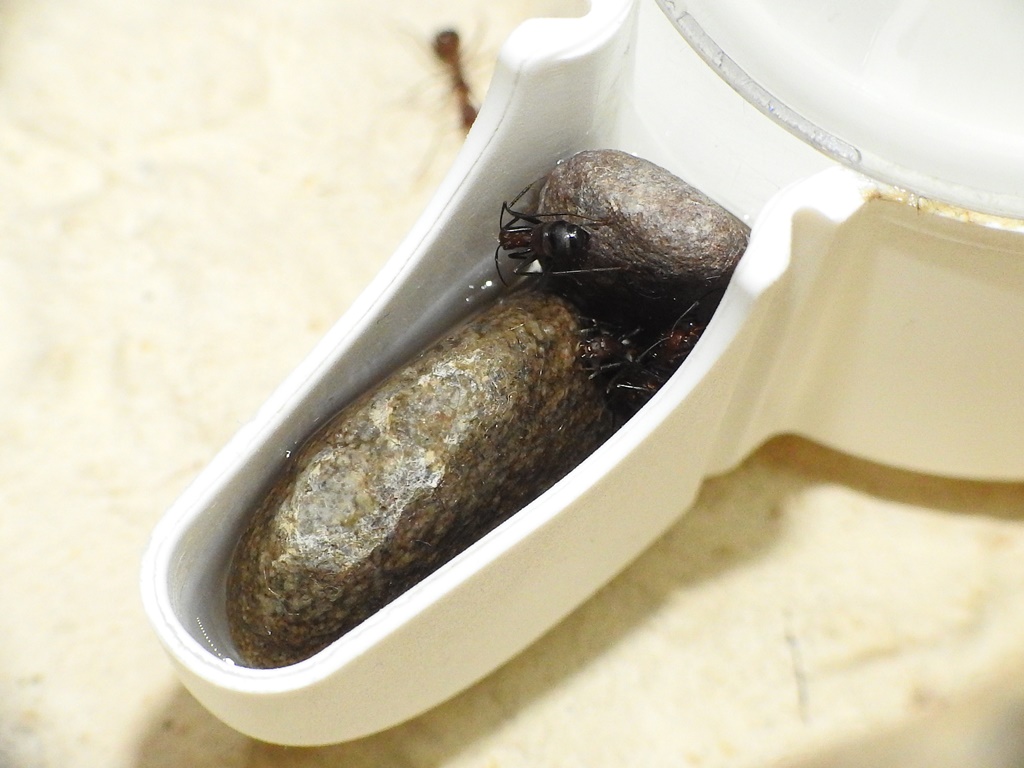Was sich bei mir bewÀhrt hat ist Watte. Einfach einen Propfen Watte unten in die TrÀnke machen. Diese verhindert ein Ertrinken und ist saugfÀhig. Die Ameisen trinken dann direkt "durch" die Watte. Und sie ist schön weeeich.