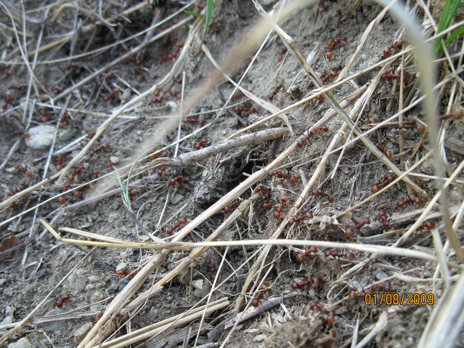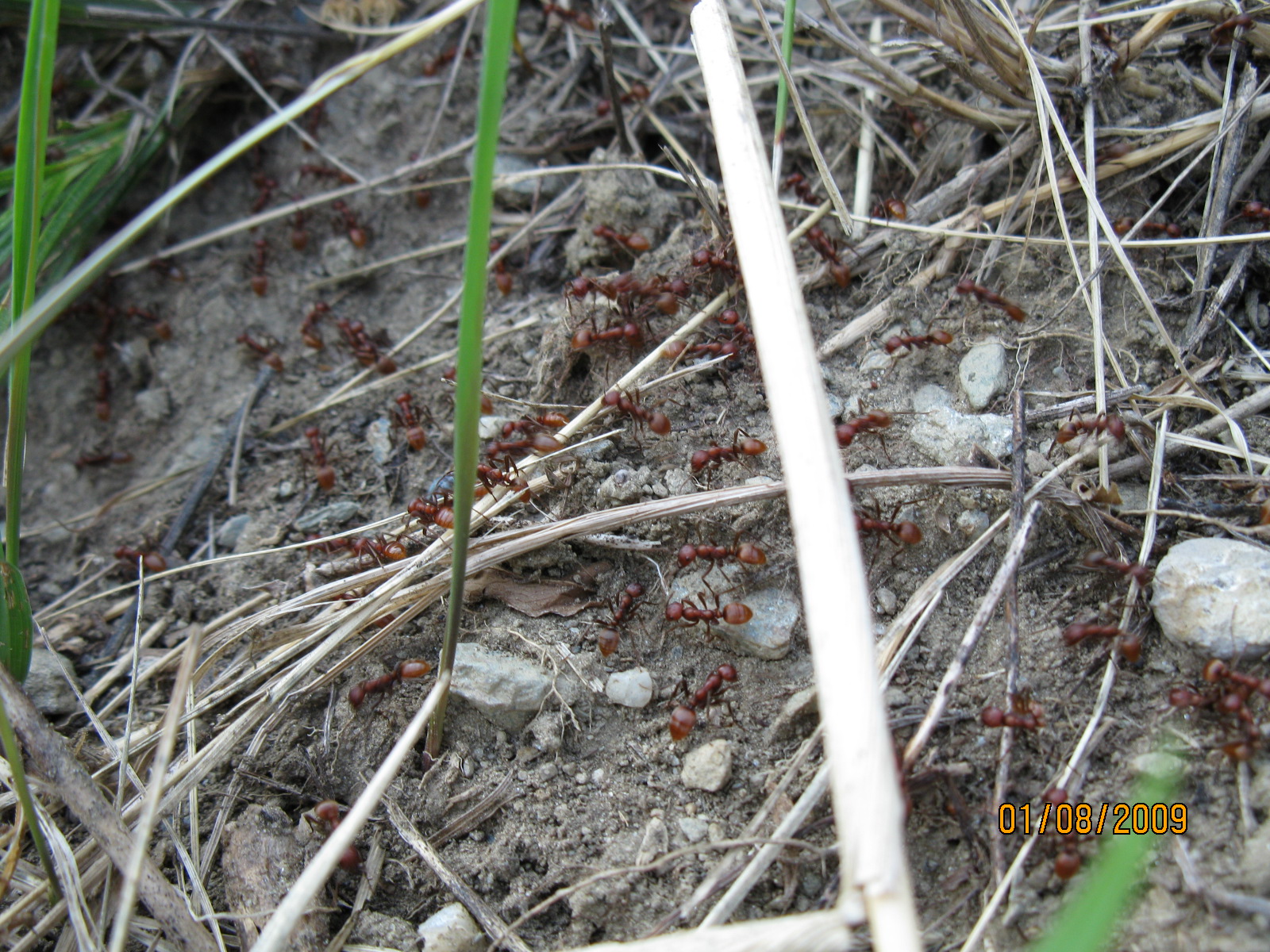 Ich habe versucht, die geschlossen vorrückende Armee zu fotografieren, ausserdem Bilder des Überfalls. Die Amazonen dringen hier gerade in das Nest der Serviformica ein. Einige Serviformica cunicularia bewegen sich zwischen den fremden Kriegerinnen, greifen dies aber wohlweislich nicht an. Die Amazonen beachten die Serviformica kaum, töten sie jedoch, wenn diese versuchen, ernsthafte Gegenwehr zu leisten.