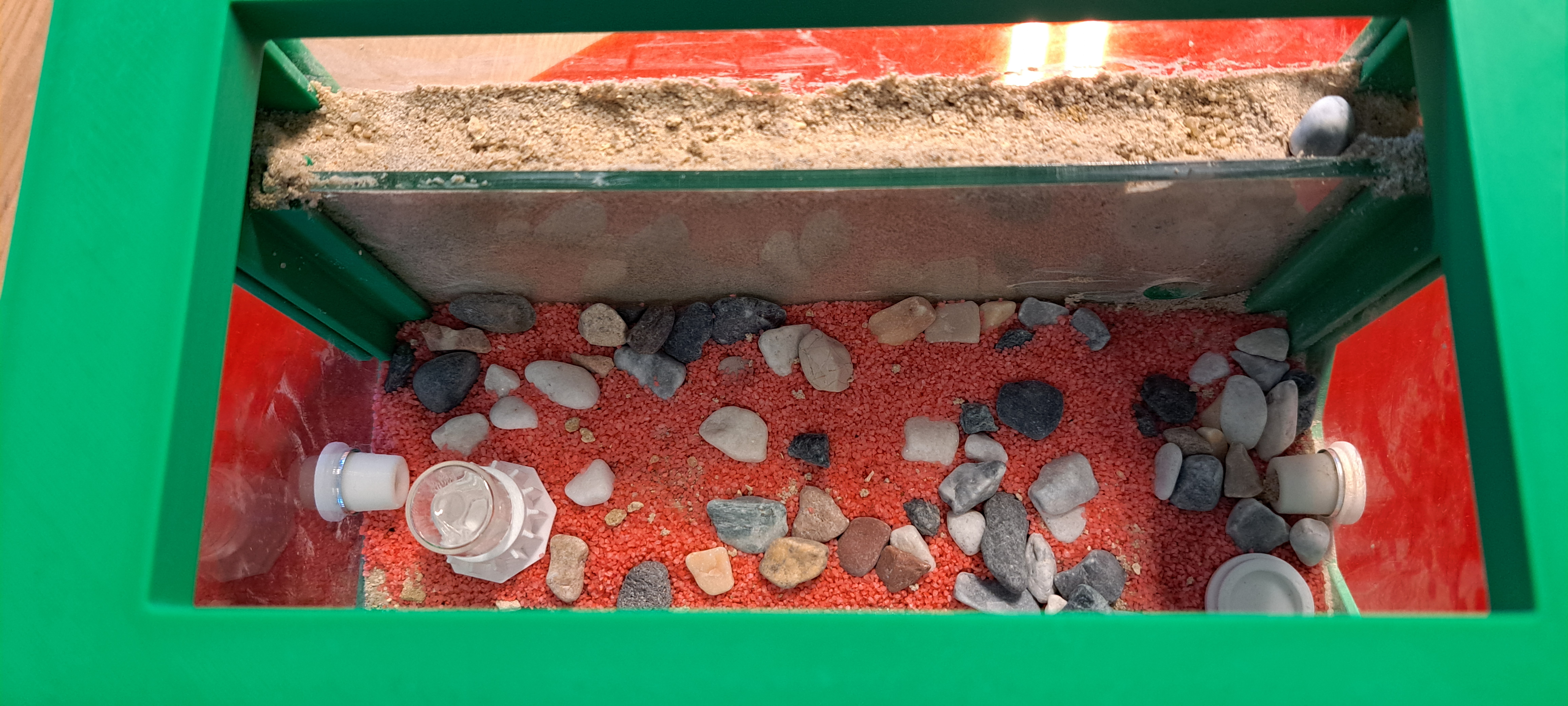 Wenn das RG nicht in die kleine Arena passen sollte, könnt ihr auch das RG per Schlauch (ggfls zu besorgen) an die Arena anschließen oder eine weitere Box (da tuts auch eine Frischhaltebox, Plastikbox, BraPlast, ...) indem das RG platz hat an das Formicarium anschließen.