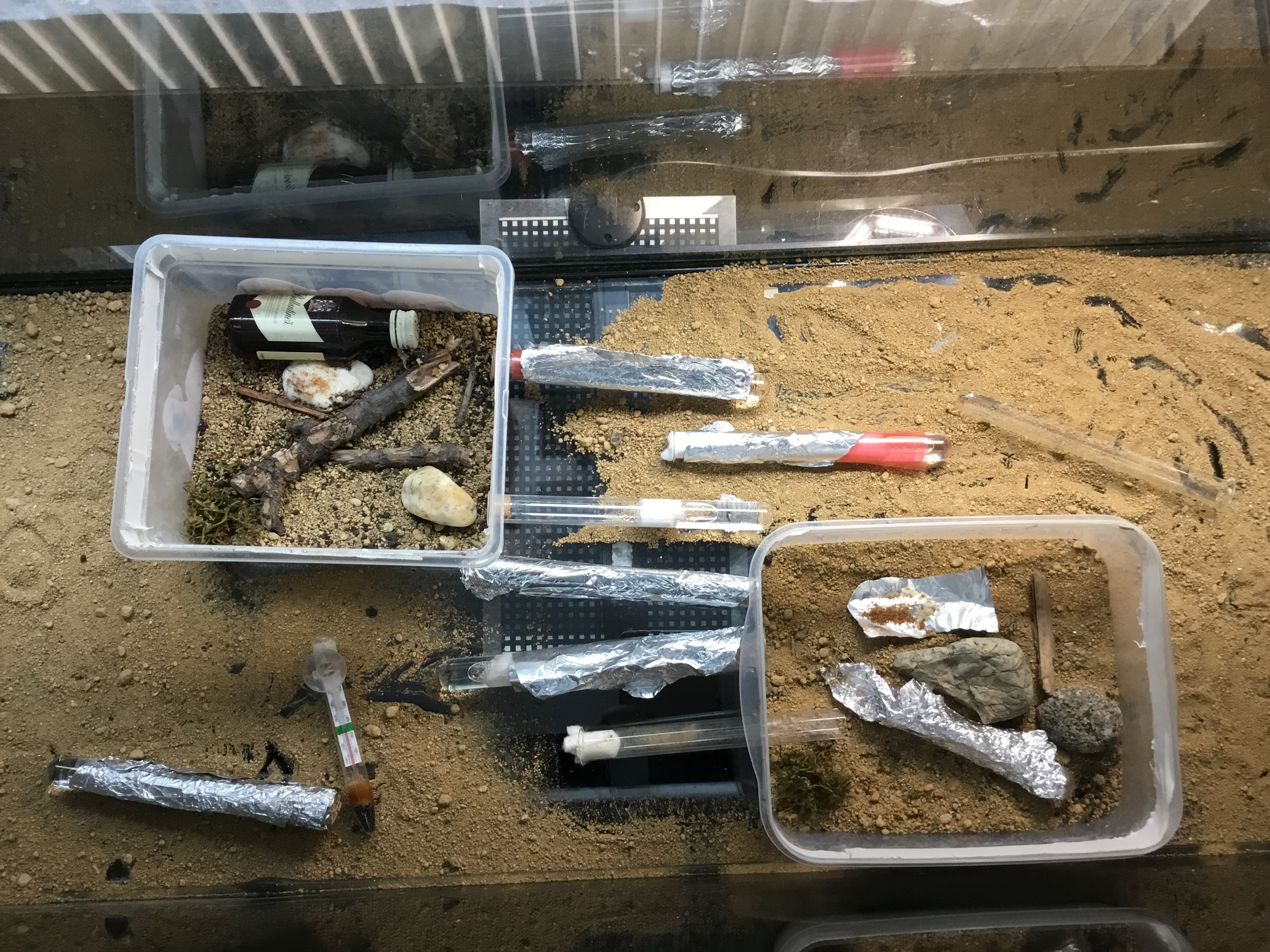 Da die Winterpause langsam näher rückt, die Lasius niger aber immer noch im kaputten RG wohnen und darin offenbar ganz zufrieden sind (haben vorgestern aufgehört, Sandkörner rein zu schleppen, dachte schon seien umgezogen, gestern rein geguckt, ca. 30 extrem winzige Pygmäen und die Gyne saßen hinter einem riesen Damm sehr homogener Sandkörner), frage ich mich wie ich sie doch noch zum Umzug bewege...