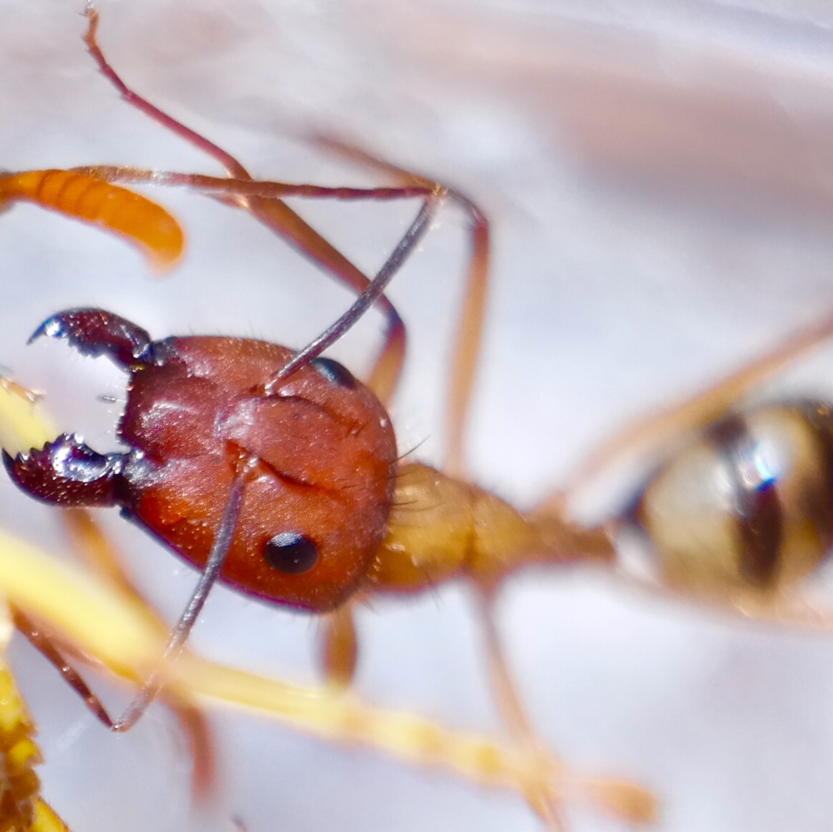 Bisse von Camponotus-Majoren können doch recht schmerzhaft sein, vor allem wenn die Mandibeln vorne so spitz zulaufen wie bei C. socius