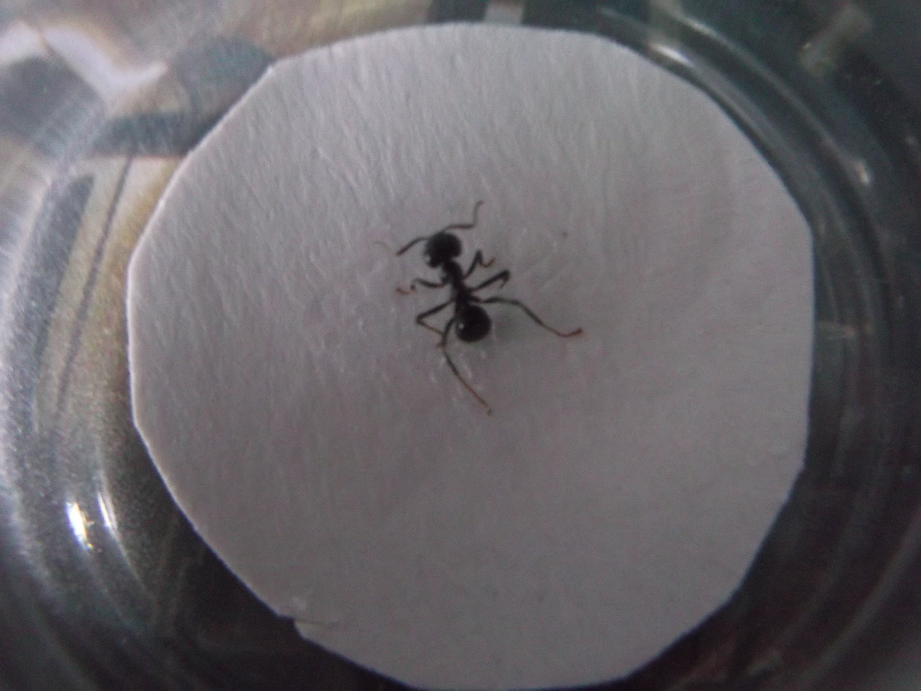 , aus der Not heraus mit Bastelkleber, es ist immer die Rede von Kleber, der wasserlöslich ist, damit man das Präparat jederzeit lösen kann, aber ich hatte so einen Kleber nicht da, noch glaube ich, dass ich die Ameise nochmal lösen muss. Ich denke solange er auf der Oberfläche hält und durchsichtig ist/wird, funktioniert jeder Kleber.