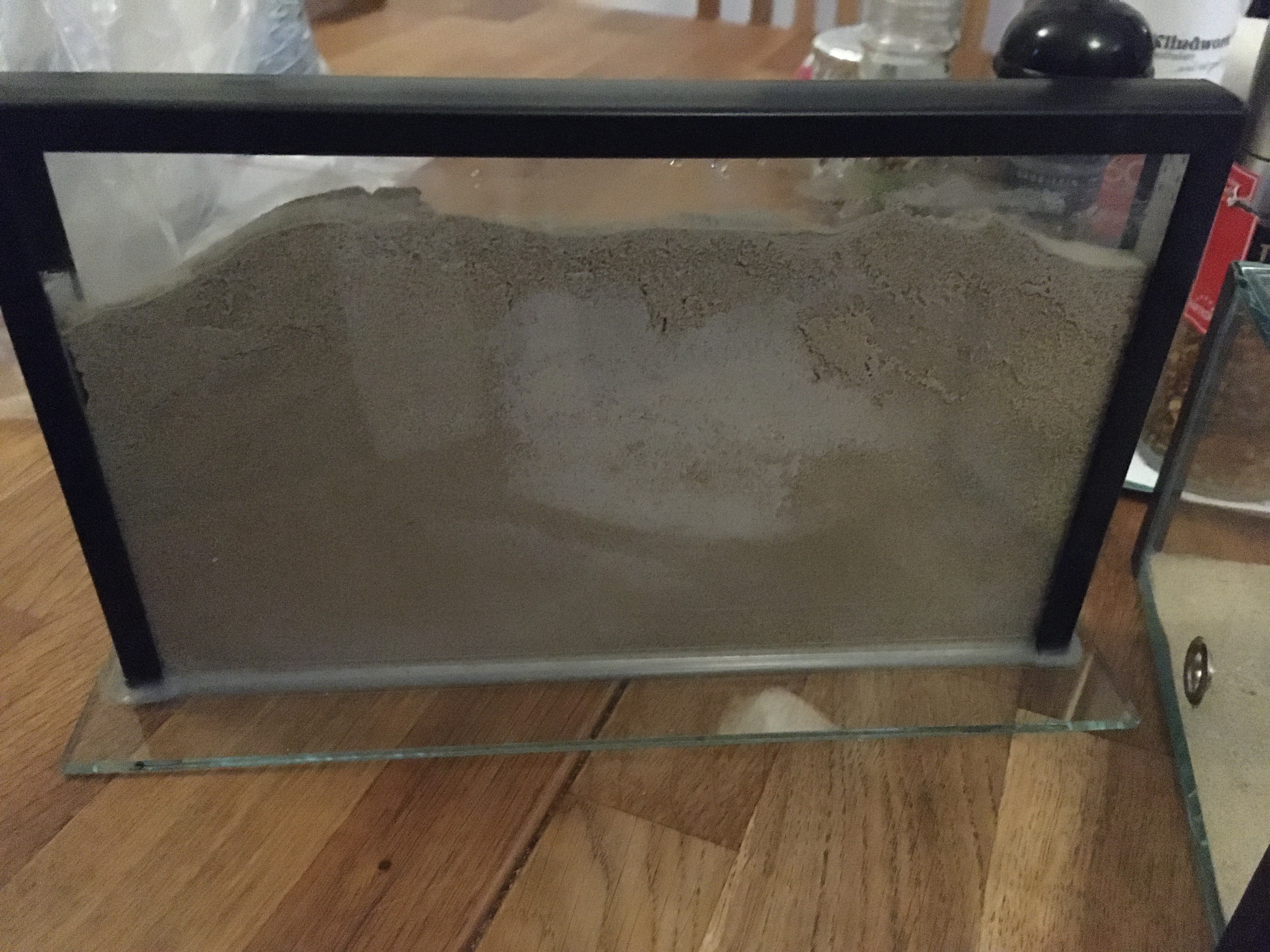 Für das Nest, müsste das Grabmaterial leicht angefeuchtet und gut angedrückt gefüllt werden, später nur immer eine Seite befeuchten, damit man 2 Zonen hat, eine feuchte und eine trockene, das brauchen nämlich Messor barbarus.
