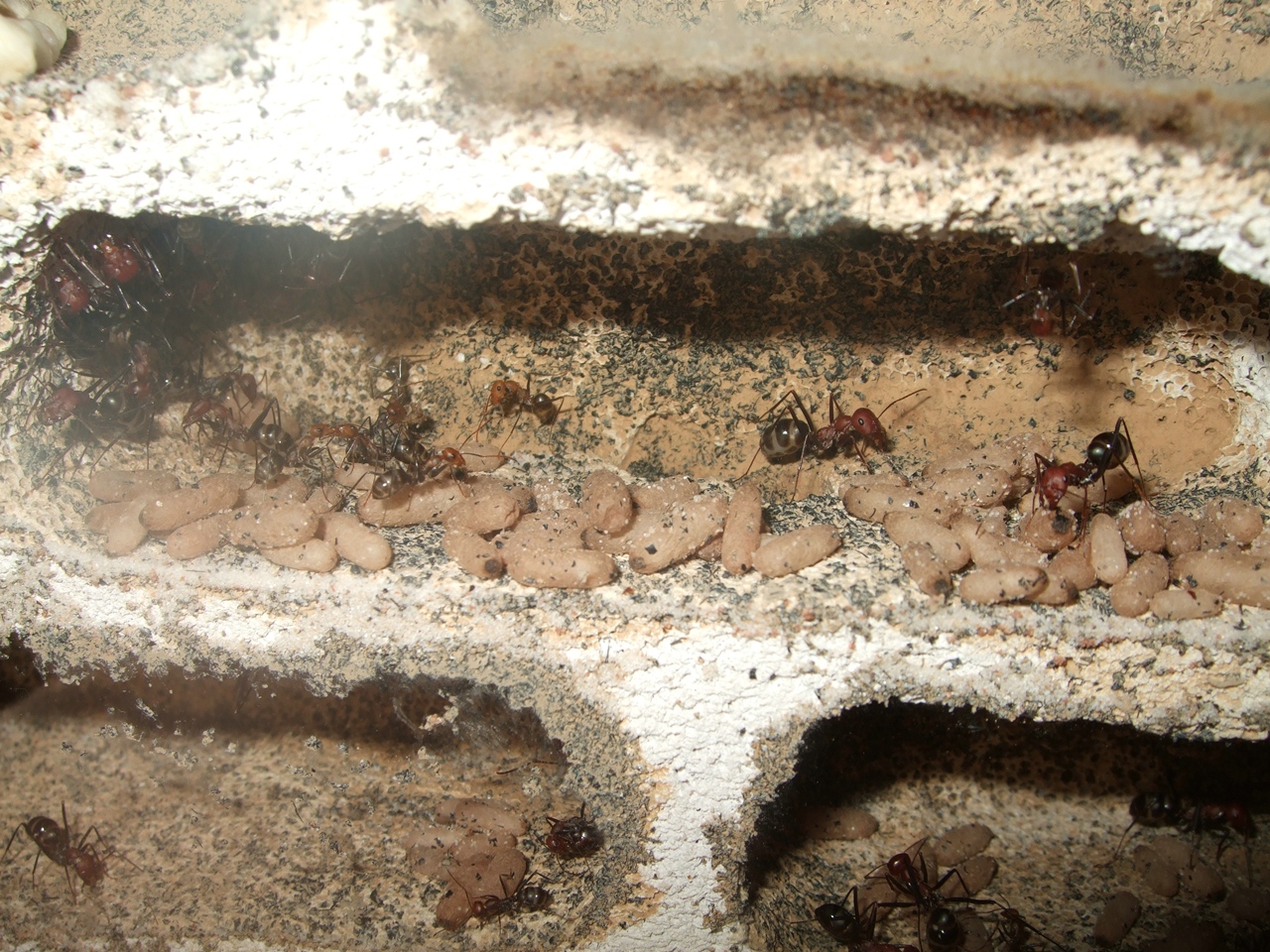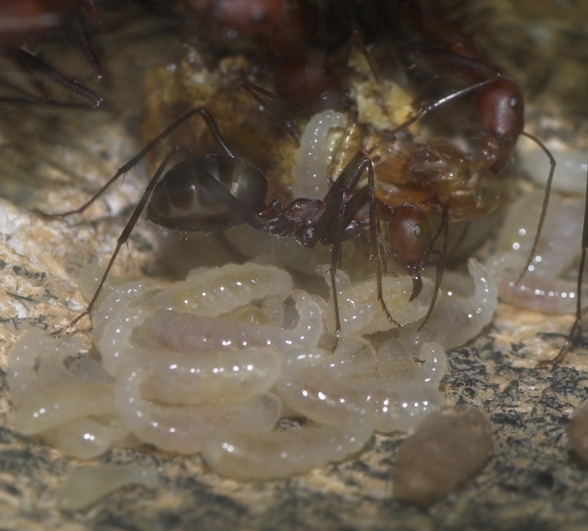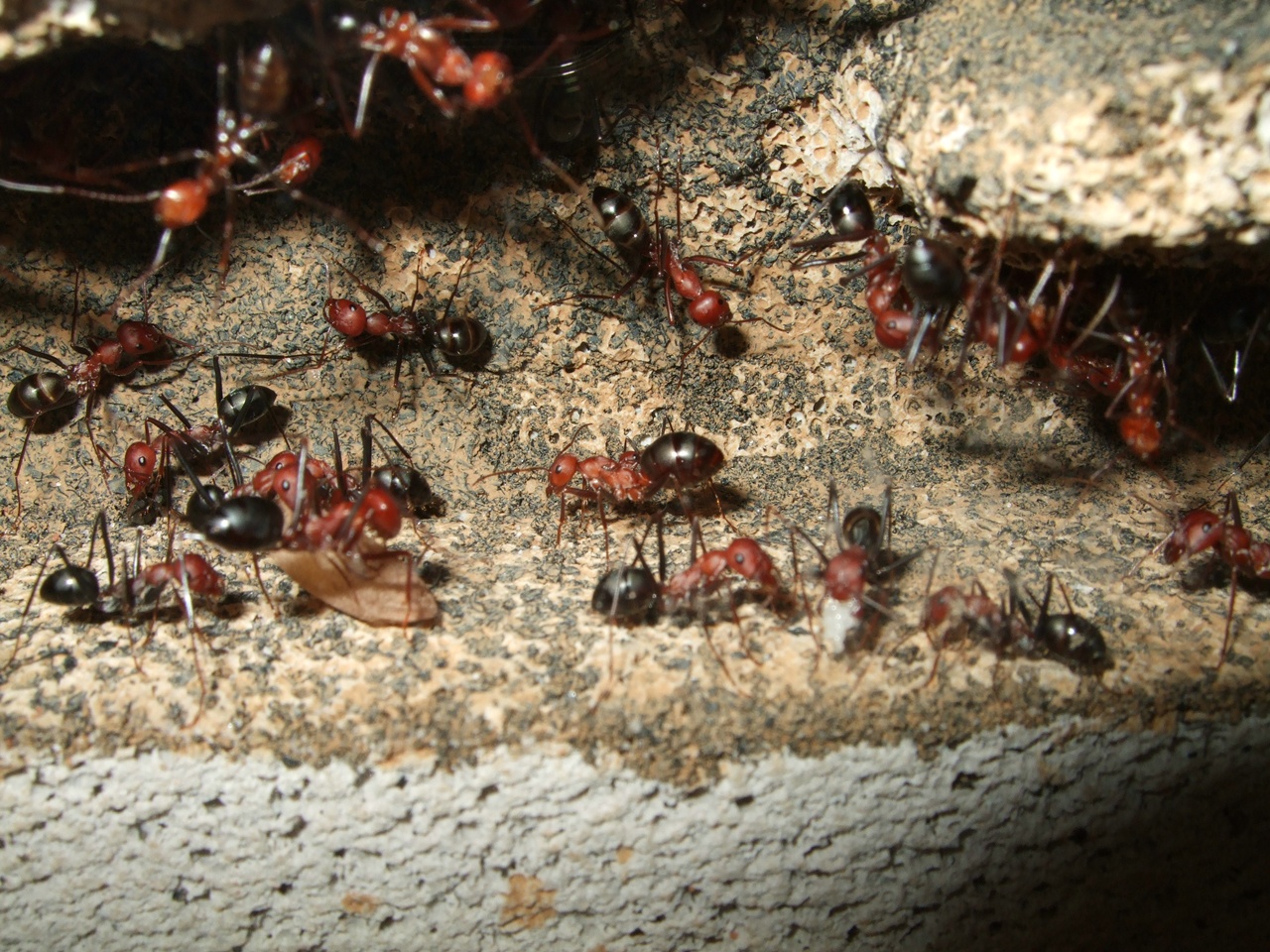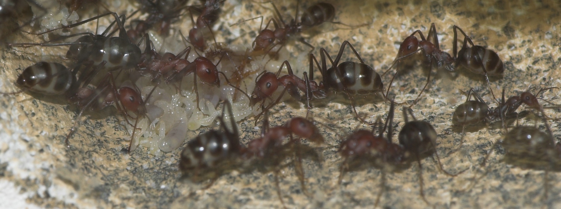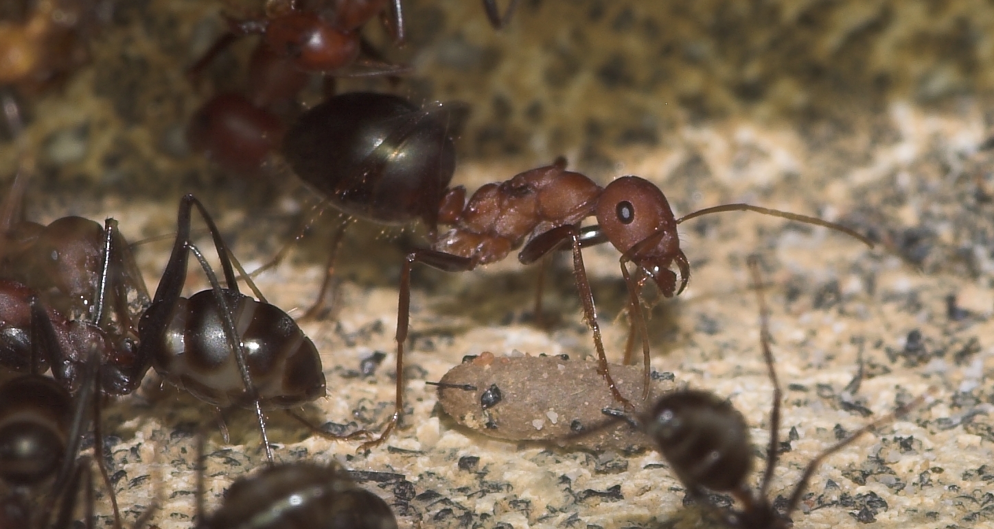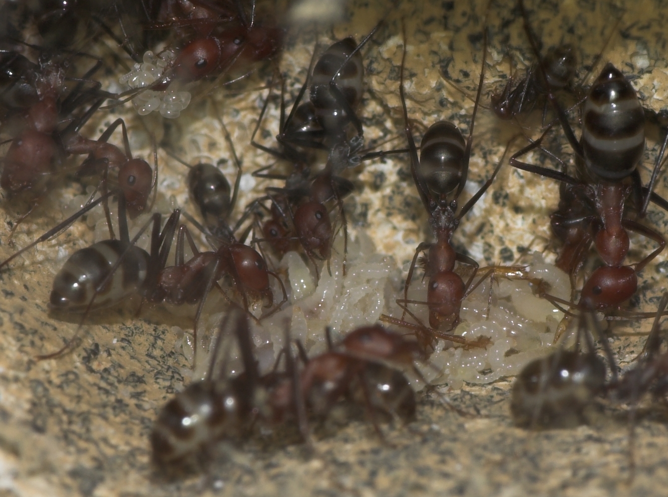 Sehr aggresive Tiere, auch untereinander. Regelmäßiges an stubsen anderer Arbeiterinnen. Transportieren sich regelmäßig ins Nest dabei auch nicht zimperlich. Können mich sehen wenn ich vor dem Becken sitze, reagieren dann auf meine Bewegungen sehr aggressiv und wollen mich attackieren! Bei der Jagd sind sie sehr vorsichtig und greifen ihr opfer immer wieder an um dann blitzschnell wieder davon ab zulassen, dann wird die Beute umgehend ins Nest gebracht!