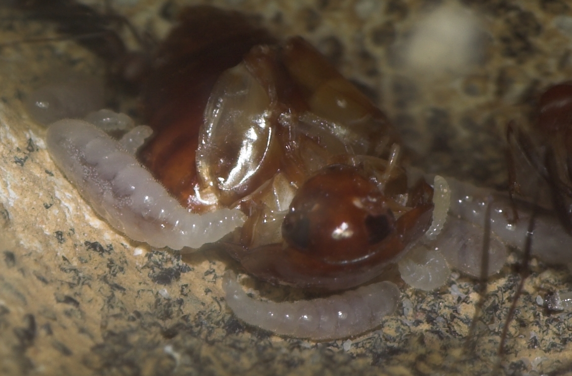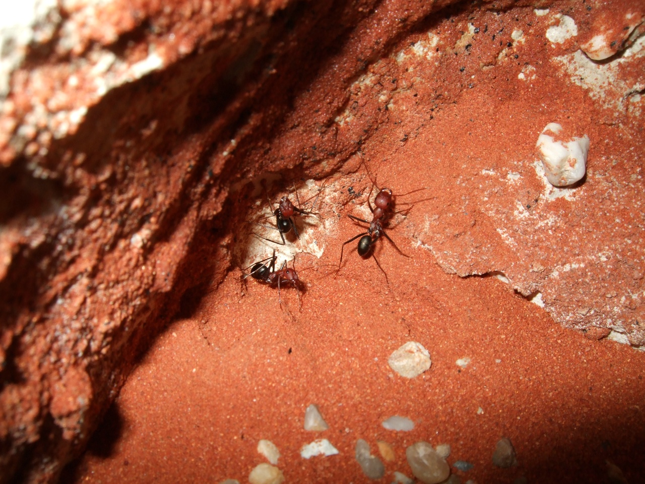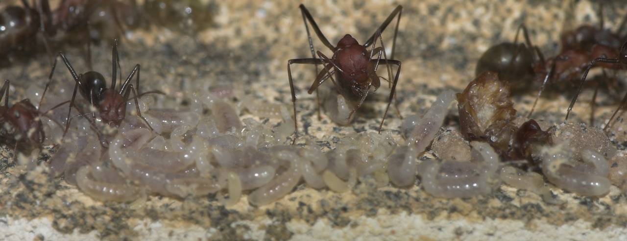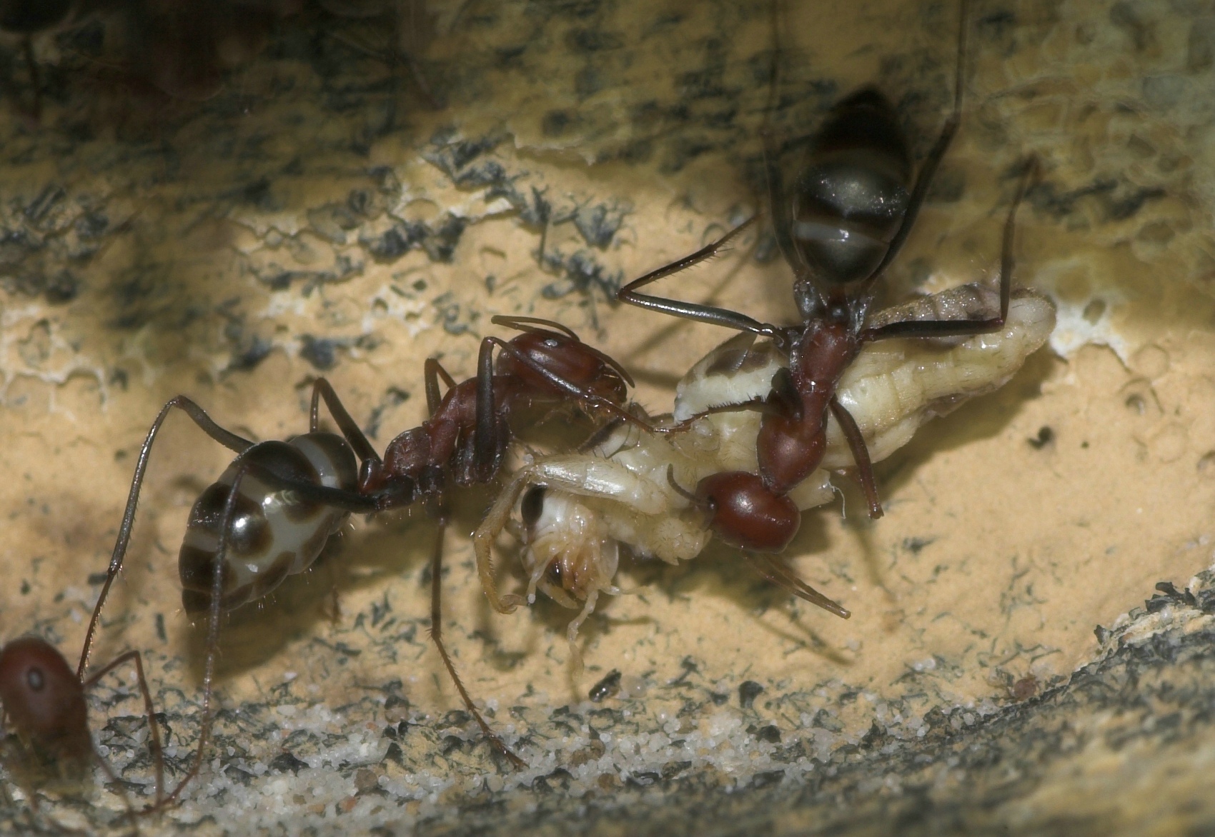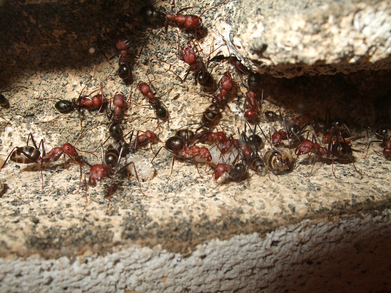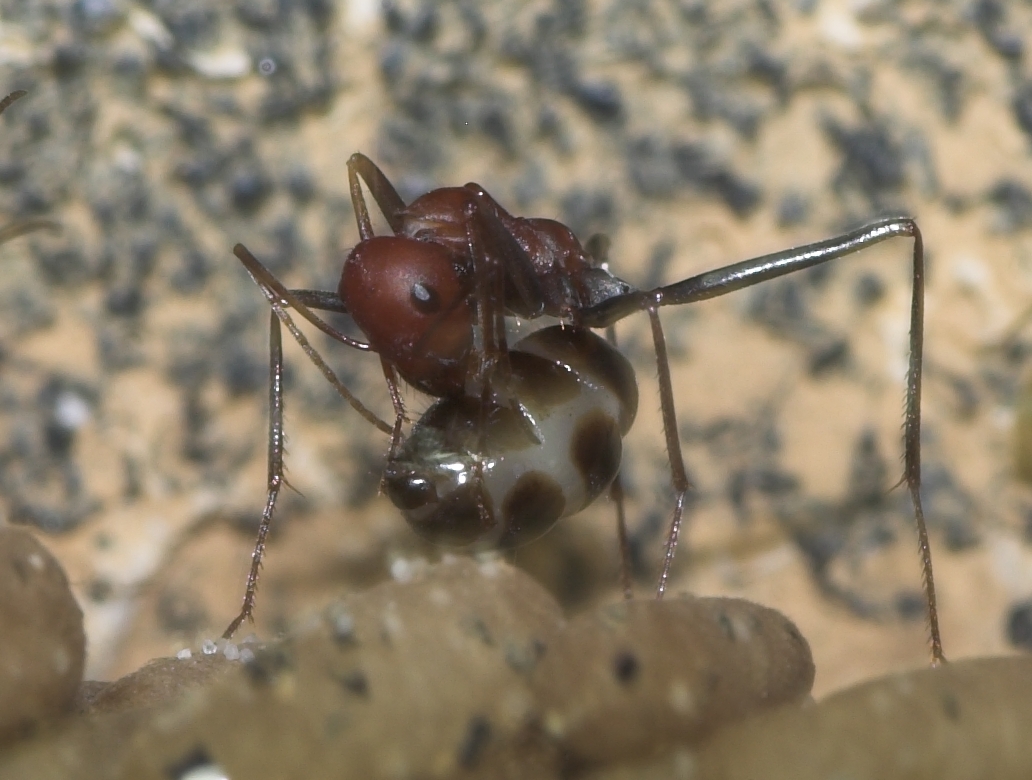 Sehr aggresive Tiere, auch untereinander. Regelmäßiges an stubsen anderer Arbeiterinnen. Transportieren sich regelmäßig ins Nest dabei auch nicht zimperlich. Können mich sehen wenn ich vor dem Becken sitze, reagieren dann auf meine Bewegungen sehr aggressiv und wollen mich attackieren! Bei der Jagd sind sie sehr vorsichtig und greifen ihr opfer immer wieder an um dann blitzschnell wieder davon ab zulassen, dann wird die Beute umgehend ins Nest gebracht!