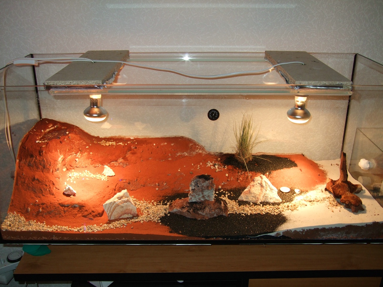 Ich habe das Becken von meiner alten Cataglyphis Kolonie genommen und es mit Essig und Wasser gründlich ausgewaschen. Danach habe ich die Berge zum teil neu mit einer Lehm/Wasser/Sand Mischung neu angemalt. Der Sand wurde natürlich komplett entfernt um das übertragen von möglichen Krankheiten so gering wie möglich zu halten!