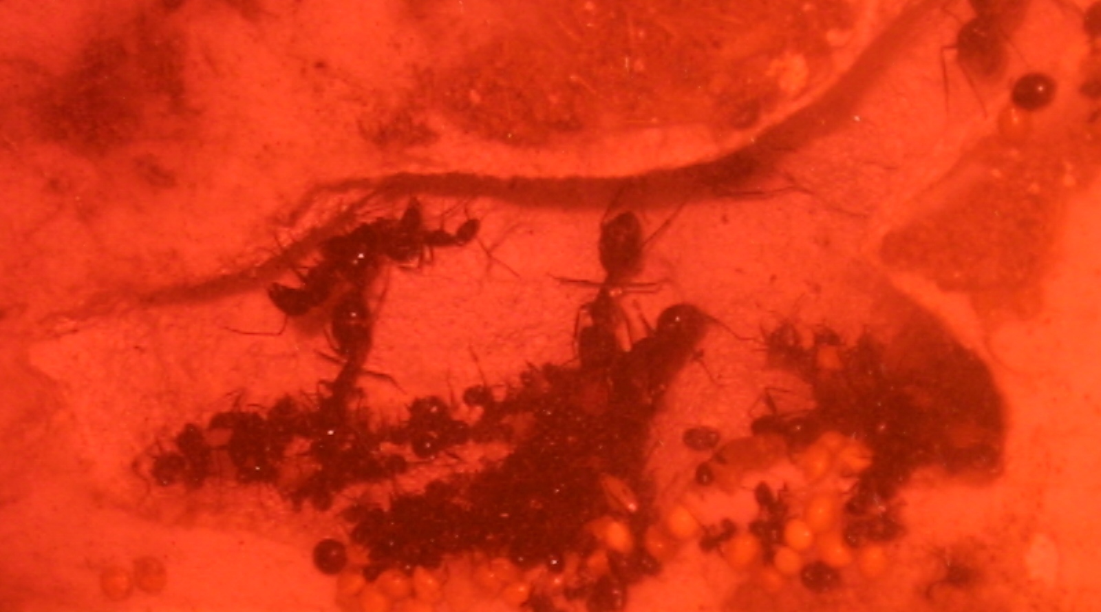 Sogar Spinnen überleben nicht lange in den Arenen, auch wenn sie kurzfristig einen erheblichen Schaden gegen einzelne Ameisen anrichten. Einmal konnte ich Vergiftungserscheinungen in einem geringen Teil der Kolonie beobachten. Seitdem kommen bei mir keine Spinnen mehr ins Formicarium. Bei den Messor konnten sich so ziemlich alle Spinnen ein Nest im Terrarium bauen und haben sich die Beute immer einzeln von der „Strasse“ geholt. Während Reptilien zu teuer für derartige Experimente sind, denke ich über das Einsetzen eines Kleinsäugers nach, konnte mich aber noch nicht durchringen, weil mir die Grenzen zwischen Tierquälerei, persönlicher Belustigung und tatsächlichem wissenschaftlichem Nutzen doch arg verschwimmen und in der Natur wohl kaum vorkommen würden. Was haltet ihr davon?
