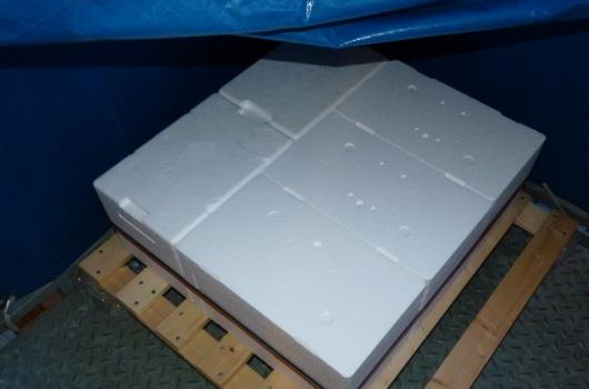 Zur Sicherung der Styroporboxen habe ich noch ein 3-4cm breites Band um dieselben geschnürt. Oben kann man die Plastikplane, die als Wetterschutz gedacht ist, erahnen.