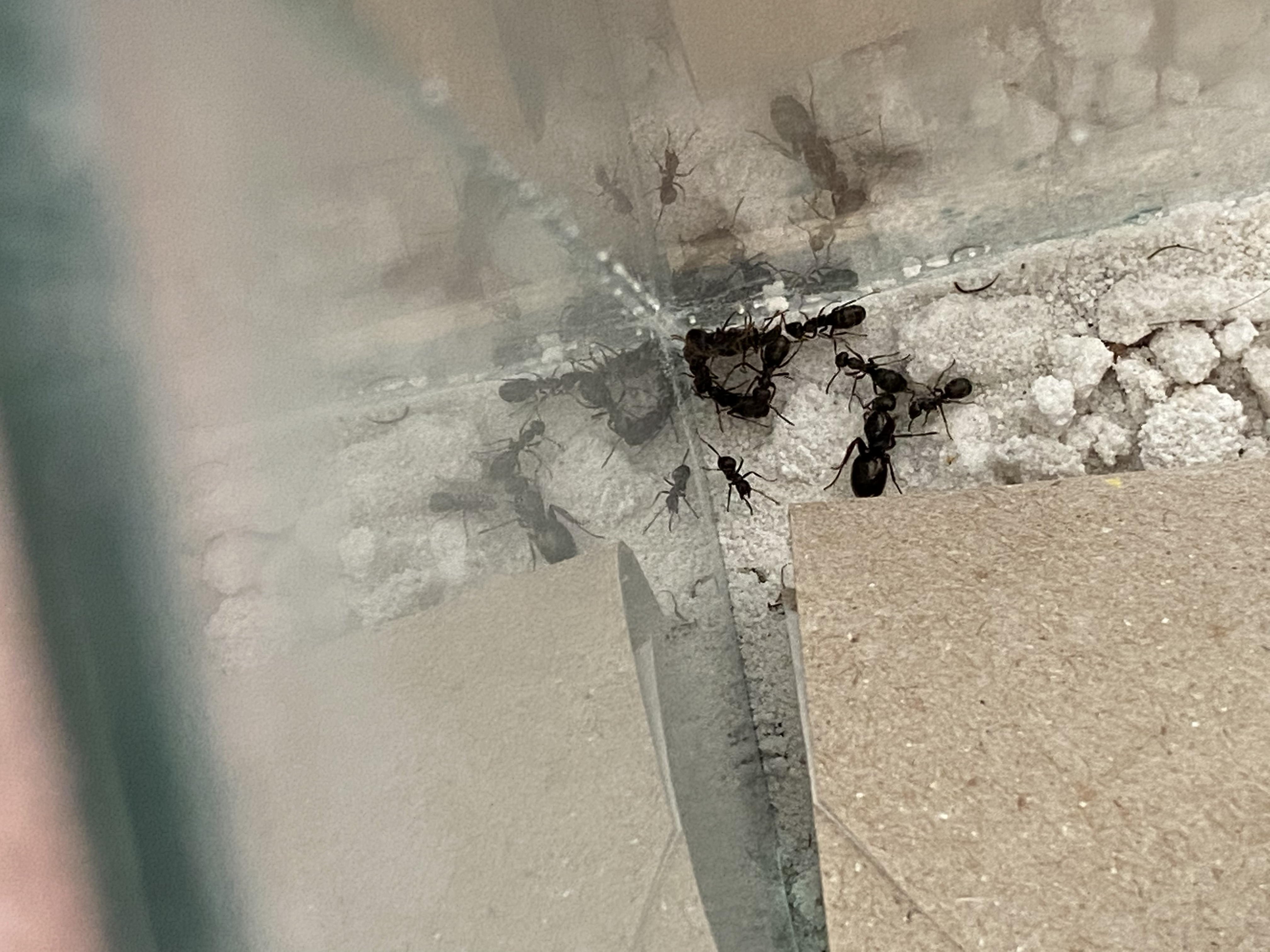 Beim Formikarium handelt es sich um einen Cube vom Antstore (20x20) und dieser ist mit einer Sand-Lehm Mischung aufgefĂŒllt. GrundsĂ€tzlich hĂ€tten sie die Möglichkeit die âWandâ hochzugraben, tun dies (noch) nicht.