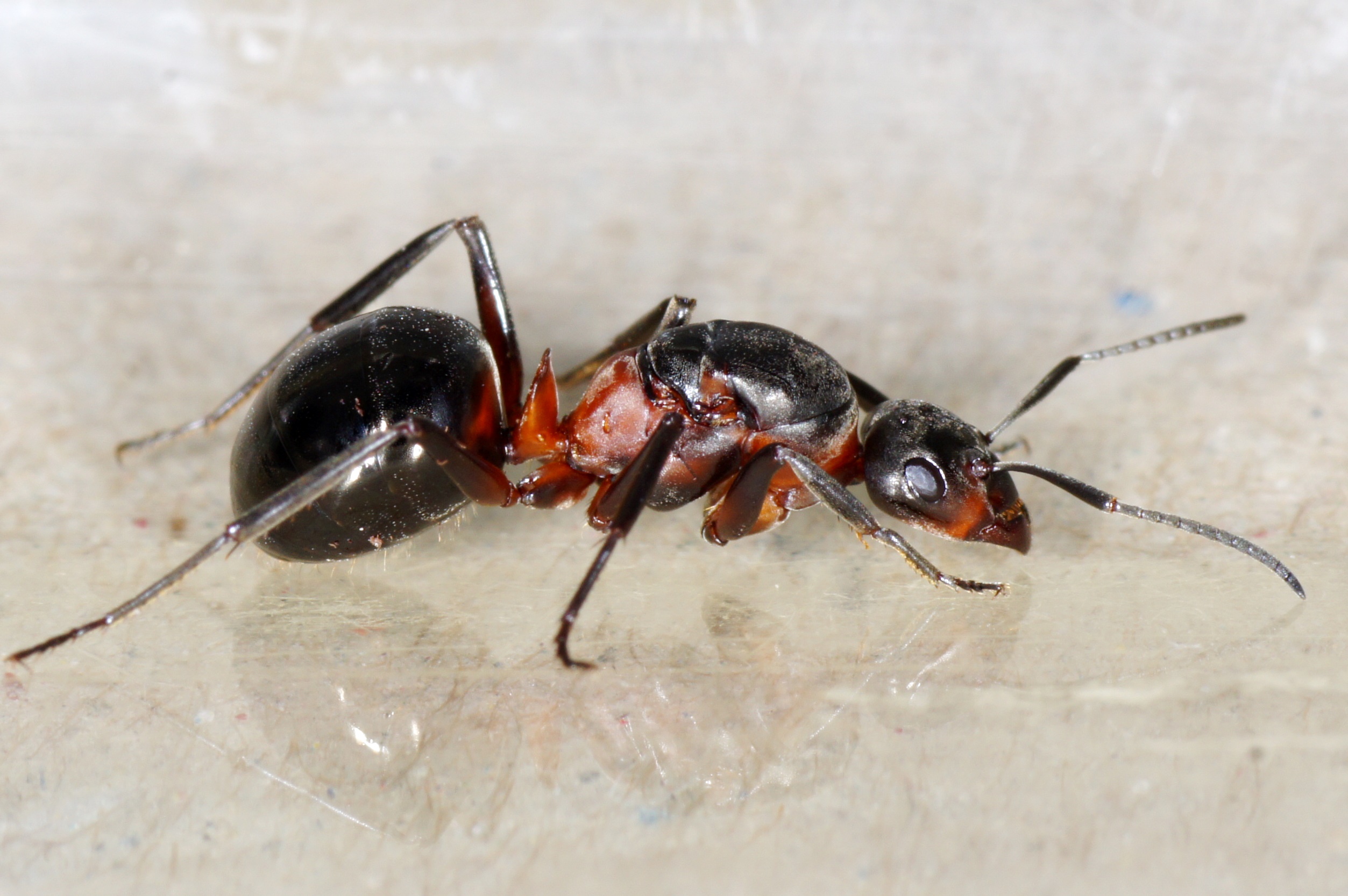 3. Unklar ob es sich um F. polyctena od. F. rufa handelt; es könnte auch das Ergebnis einer Kreuzung sein. Bei stärkerer Vergrößerung sind ein paar Borsten am Rücken zu erkennen. Vorsichtig: F. cf. polyctena.