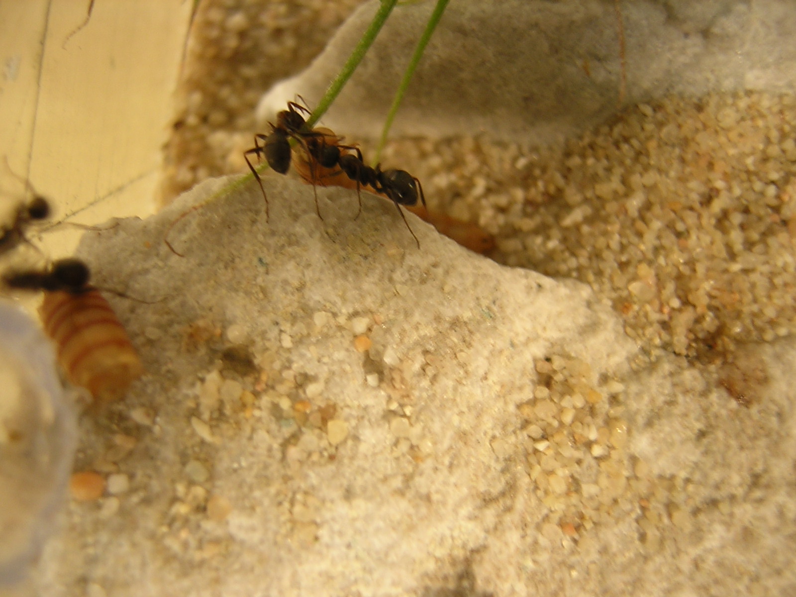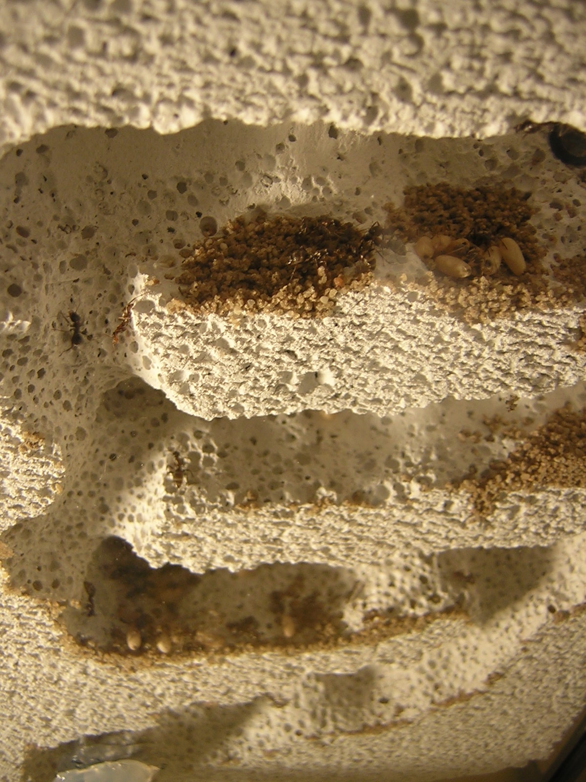 Am späten Nachmittag und in den Abendstunden furagieren immer wieder einzelne Arbeiterinnen in der Arena.( was nicht heißt, dass es Nachts oder in den Morgenstunden anders ist, allerdings habe ich dann kaum/keine Zeit die Kolonie zu beobachten.)